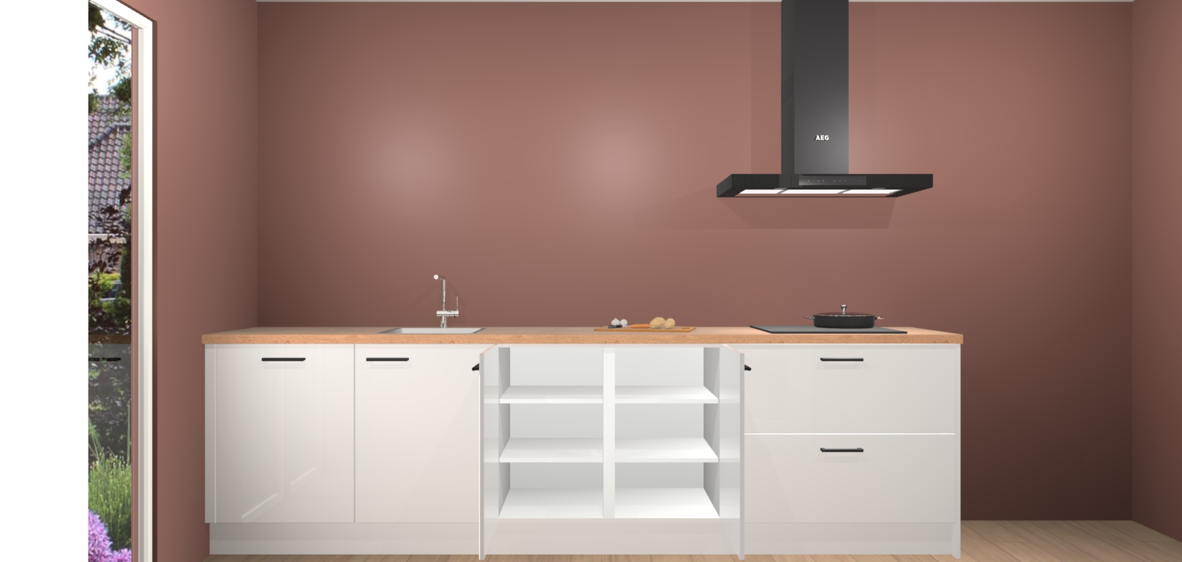 De softclose deuren openen en sluiten is ook heel eenvoudig - geniet van een moeiteloze keukenervaring, zelfs als er kinderen rondlopen. Voor extra gemak bij het plaatsen van uw bestelling bieden we ook een upgrade naar een kookplaat met geïntegreerde afzuiging.