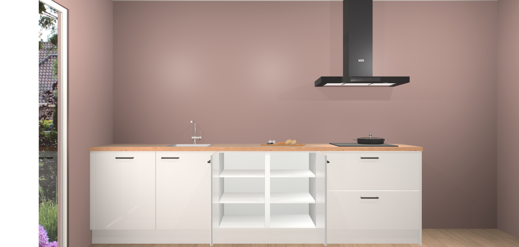 De softclose deuren openen en sluiten is ook heel eenvoudig - geniet van een moeiteloze keukenervaring, zelfs als er kinderen rondlopen. Voor extra gemak bij het plaatsen van uw bestelling bieden we ook een upgrade naar een kookplaat met geïntegreerde afzuiging.