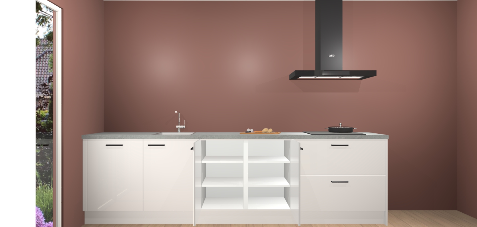 De softclose deuren openen en sluiten is ook heel eenvoudig - geniet van een moeiteloze keukenervaring, zelfs als er kinderen rondlopen. Voor extra gemak bij het plaatsen van uw bestelling bieden we ook een upgrade naar een kookplaat met geïntegreerde afzuiging.