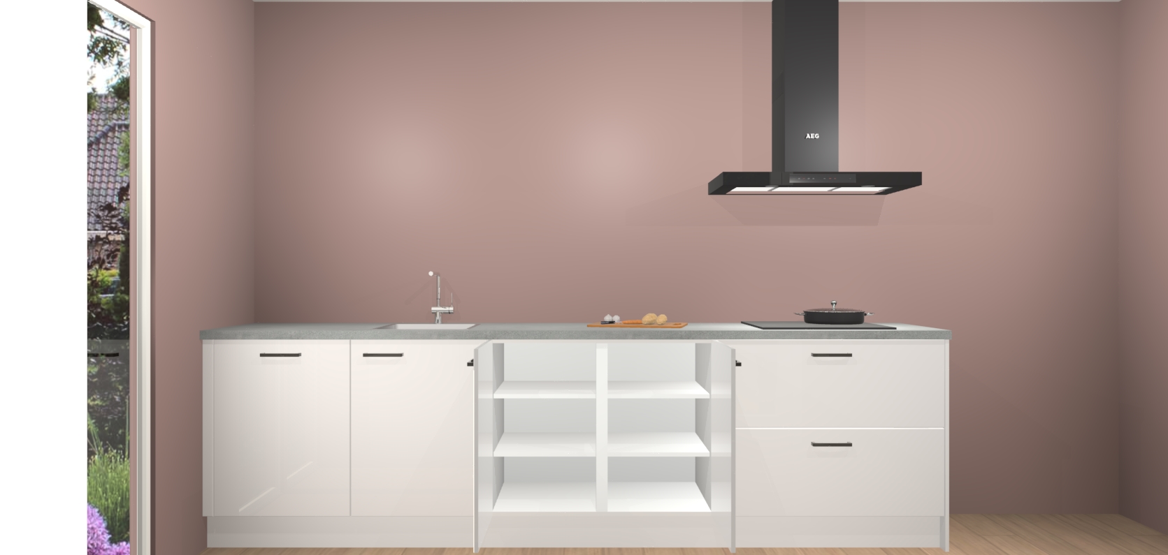 De softclose deuren openen en sluiten is ook heel eenvoudig - geniet van een moeiteloze keukenervaring, zelfs als er kinderen rondlopen. Voor extra gemak bij het plaatsen van uw bestelling bieden we ook een upgrade naar een kookplaat met geïntegreerde afzuiging.