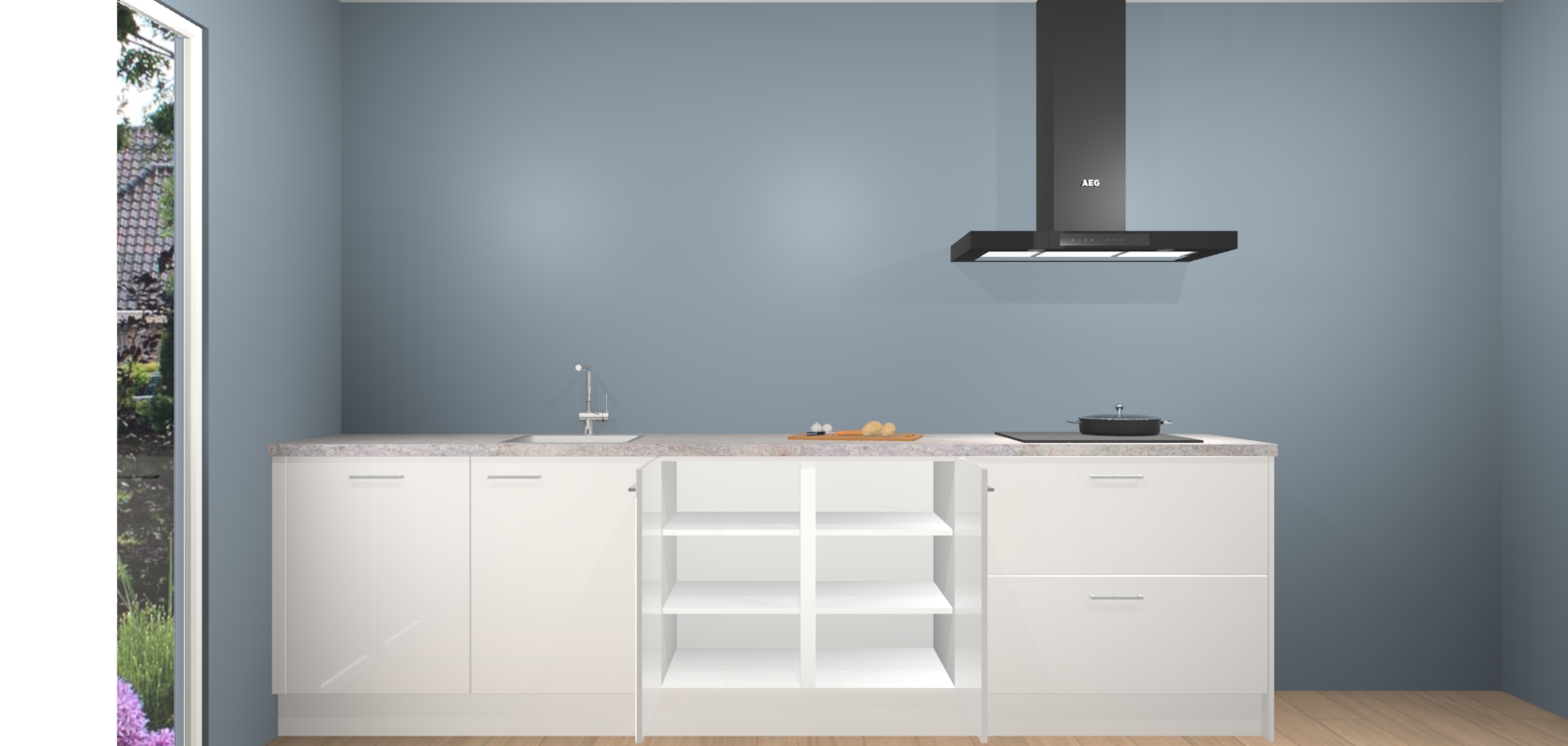 De softclose deuren openen en sluiten is ook heel eenvoudig - geniet van een moeiteloze keukenervaring, zelfs als er kinderen rondlopen. Voor extra gemak bij het plaatsen van uw bestelling bieden we ook een upgrade naar een kookplaat met geïntegreerde afzuiging.