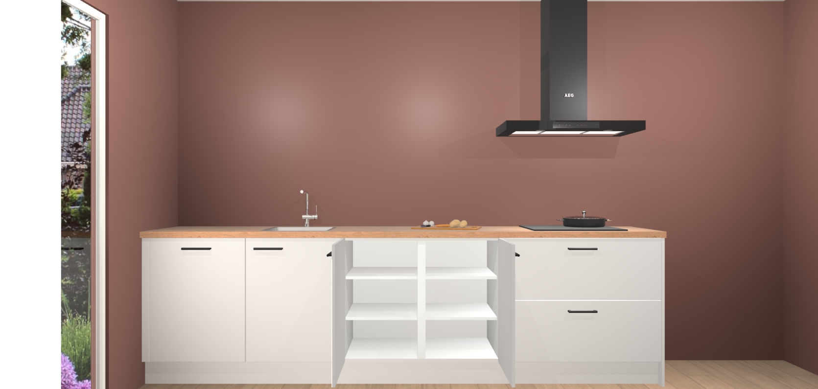 De softclose deuren openen en sluiten is ook heel eenvoudig - geniet van een moeiteloze keukenervaring, zelfs als er kinderen rondlopen. Voor extra gemak bij het plaatsen van uw bestelling bieden we ook een upgrade naar een kookplaat met geïntegreerde afzuiging.