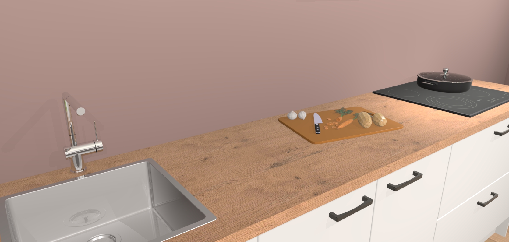 - Uitsparing van kookplaat, spoelbak en kraan dient u zelf te verzorgen.