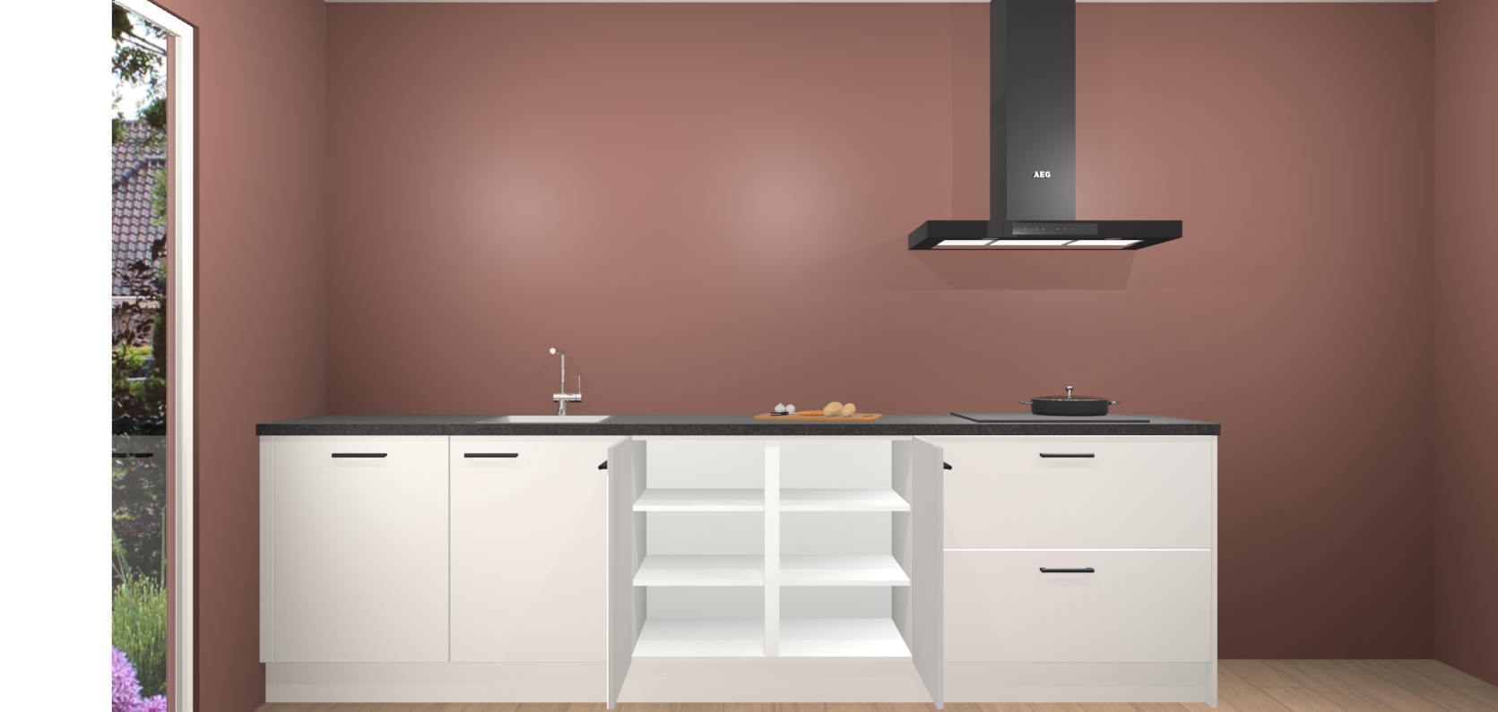 De softclose deuren openen en sluiten is ook heel eenvoudig - geniet van een moeiteloze keukenervaring, zelfs als er kinderen rondlopen. Voor extra gemak bij het plaatsen van uw bestelling bieden we ook een upgrade naar een kookplaat met geïntegreerde afzuiging.