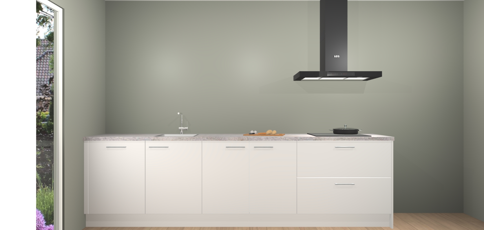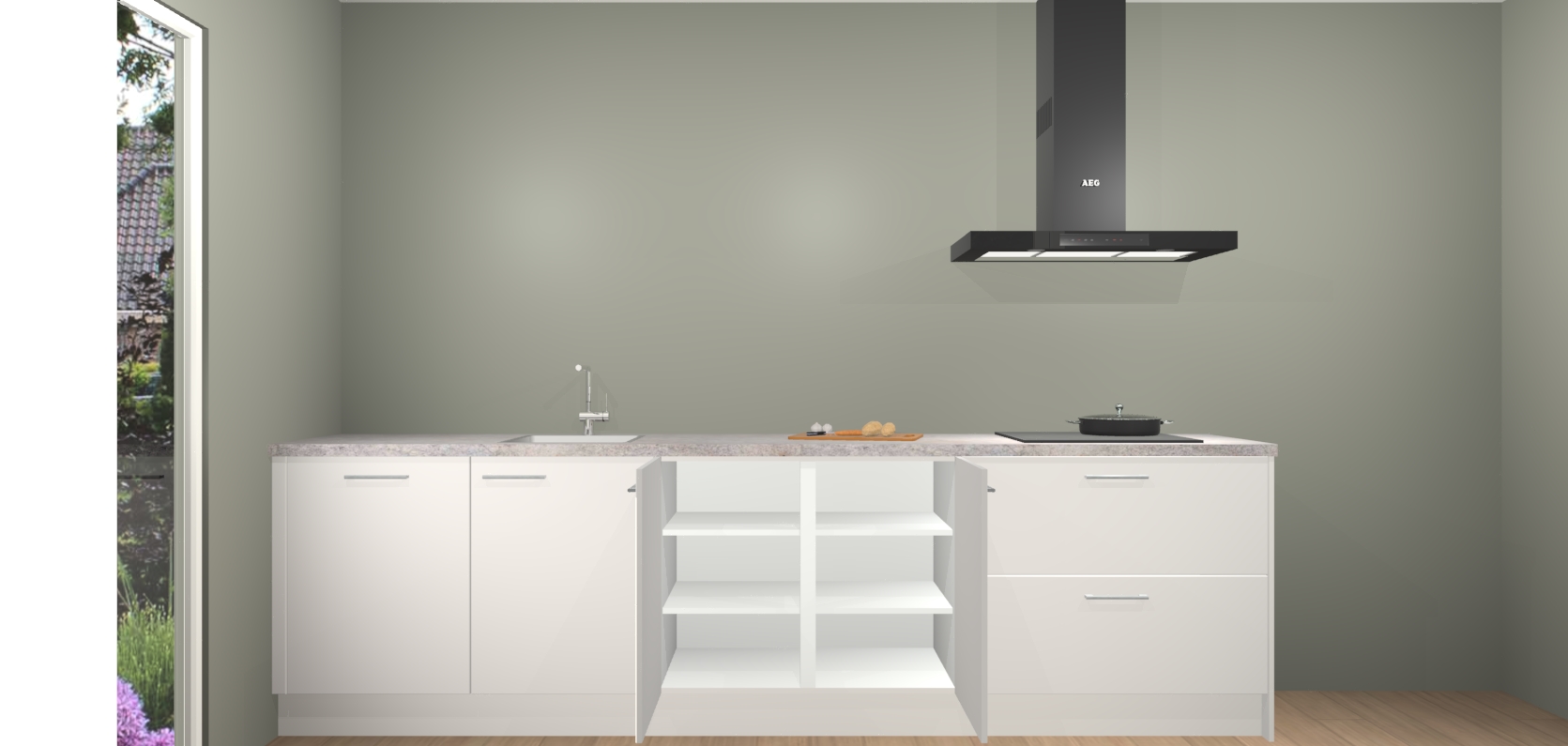De softclose deuren openen en sluiten is ook heel eenvoudig - geniet van een moeiteloze keukenervaring, zelfs als er kinderen rondlopen. Voor extra gemak bij het plaatsen van uw bestelling bieden we ook een upgrade naar een kookplaat met geïntegreerde afzuiging.