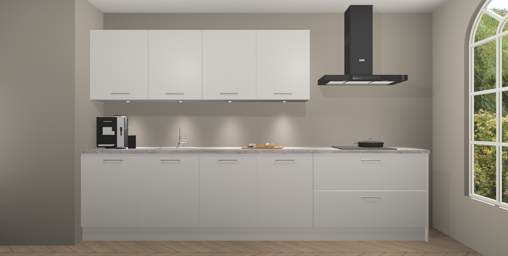 De softclose deuren openen en sluiten is ook heel eenvoudig - geniet van een moeiteloze keukenervaring, zelfs als er kinderen rondlopen. Voor extra gemak bij het plaatsen van uw bestelling bieden we ook een upgrade naar een kookplaat met geïntegreerde afzuiging.