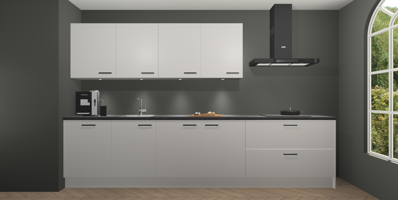 De softclose deuren openen en sluiten is ook heel eenvoudig - geniet van een moeiteloze keukenervaring, zelfs als er kinderen rondlopen. Voor extra gemak bij het plaatsen van uw bestelling bieden we ook een upgrade naar een kookplaat met geïntegreerde afzuiging.