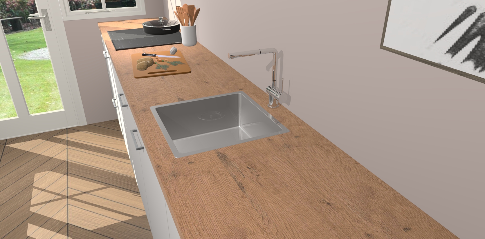 • Bij een hoekwerkblad zijn de hoeken in gevreesd en op maat gemaakt