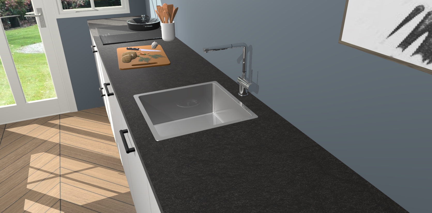 - Bij een hoekwerkblad zijn de hoeken in gevreesd en op maat gemaakt