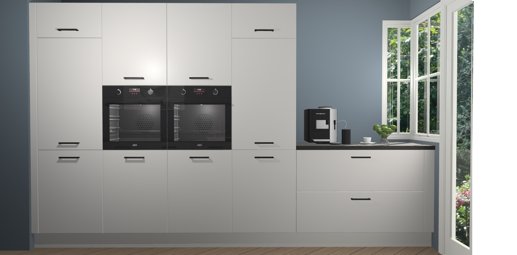 Een stijlvolle en praktische keuken als deze mag gezien worden. Dankzij de prachtige zijdegrijze matte afwerking wordt de keuken gemakkelijk het middelpunt van uw huis - hij ziet er geweldig uit onder allerlei lichtomstandigheden, van dag tot nacht!
