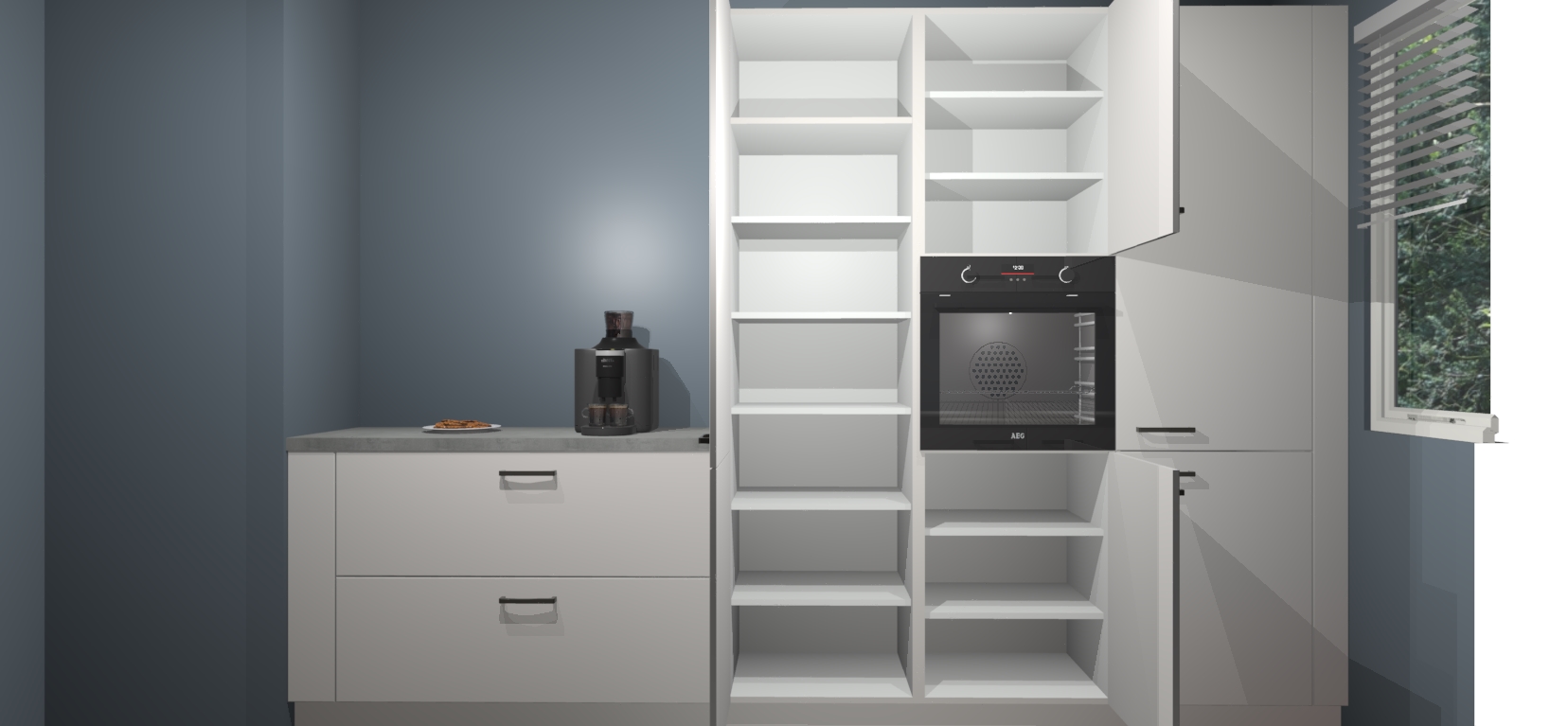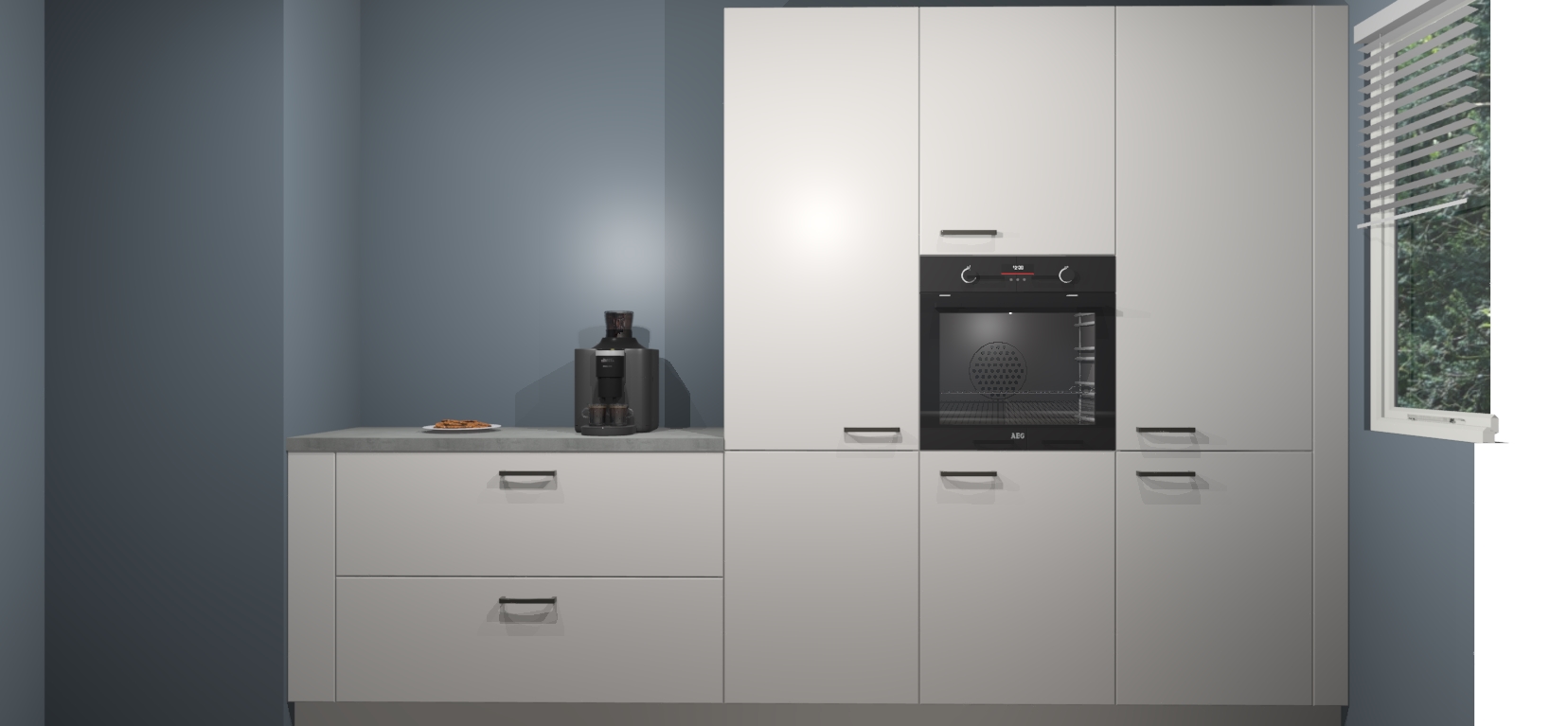 Een stijlvolle en praktische keuken als deze mag gezien worden. Dankzij de prachtige Zijdegrijze matte afwerking wordt de keuken gemakkelijk het middelpunt van uw huis - hij ziet er geweldig uit onder allerlei lichtomstandigheden, van dag tot nacht!