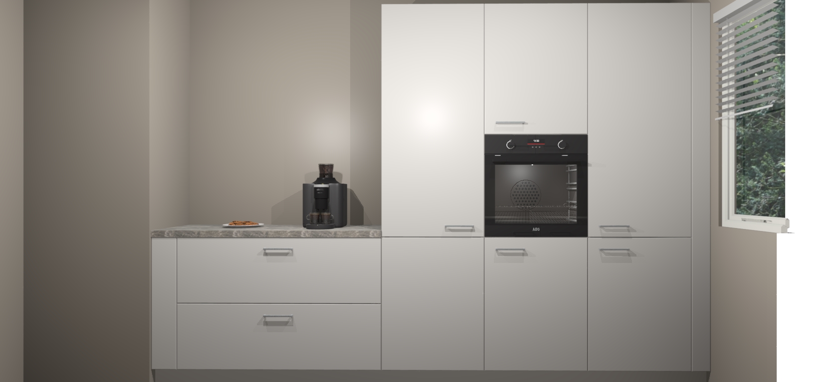Een stijlvolle en praktische keuken als deze mag gezien worden. Dankzij de prachtige Zijdegrijze matte afwerking wordt de keuken gemakkelijk het middelpunt van uw huis - hij ziet er geweldig uit onder allerlei lichtomstandigheden, van dag tot nacht!