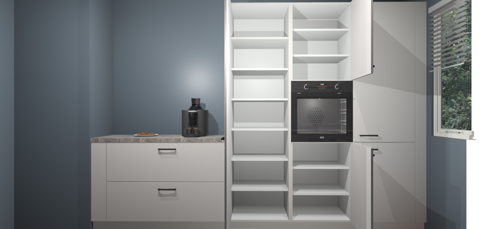 Een stijlvolle en praktische keuken als deze mag gezien worden. Dankzij de prachtige Zijdegrijze matte afwerking wordt de keuken gemakkelijk het middelpunt van uw huis - hij ziet er geweldig uit onder allerlei lichtomstandigheden, van dag tot nacht!