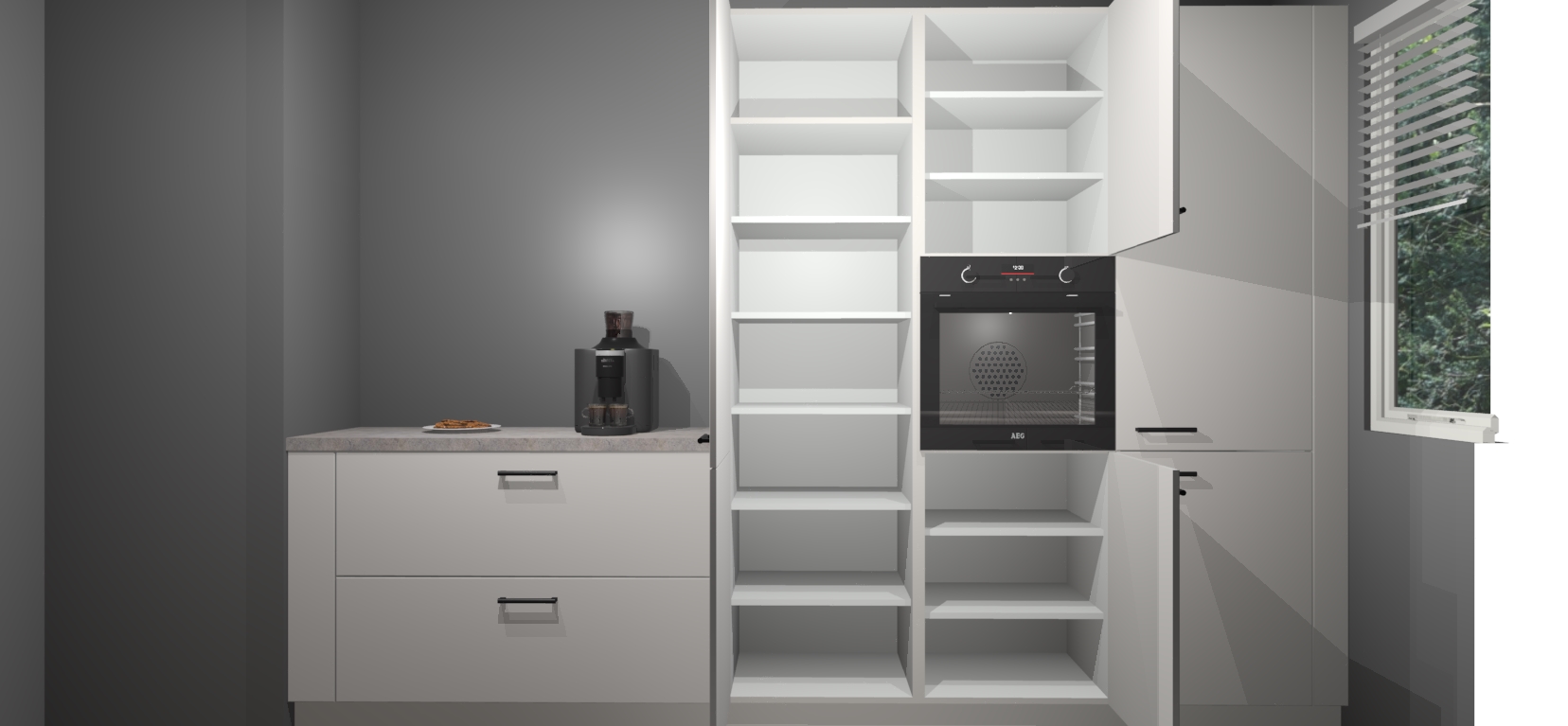 Een stijlvolle en praktische keuken als deze mag gezien worden. Dankzij de prachtige Zijdegrijze matte afwerking wordt de keuken gemakkelijk het middelpunt van uw huis - hij ziet er geweldig uit onder allerlei lichtomstandigheden, van dag tot nacht!