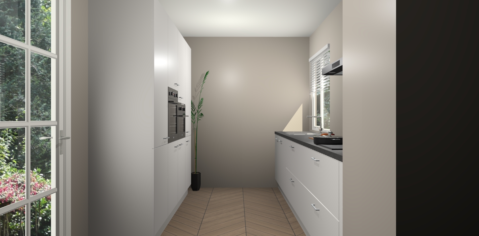 Een stijlvolle en praktische keuken als deze mag gezien worden. Dankzij de prachtige matte afwerking wordt de keuken gemakkelijk het middelpunt van uw huis - hij ziet er geweldig uit onder allerlei lichtomstandigheden, van dag tot nacht!