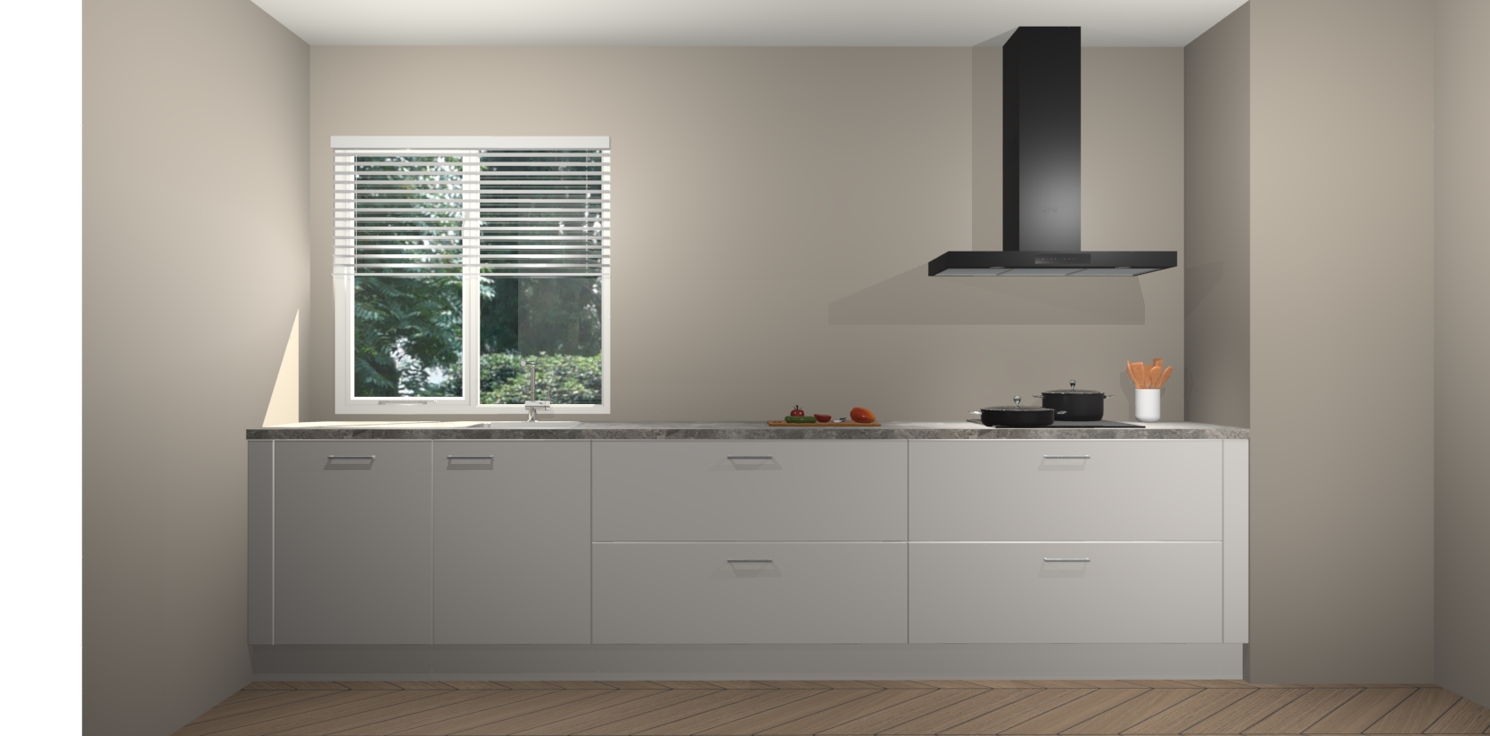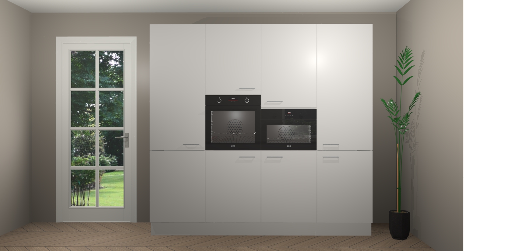 Een stijlvolle en praktische keuken als deze mag gezien worden. Dankzij de prachtige matte afwerking wordt de keuken gemakkelijk het middelpunt van uw huis - hij ziet er geweldig uit onder allerlei lichtomstandigheden, van dag tot nacht!