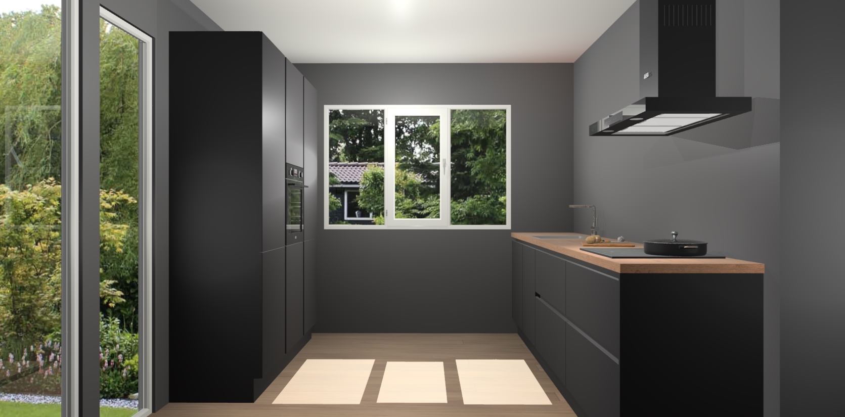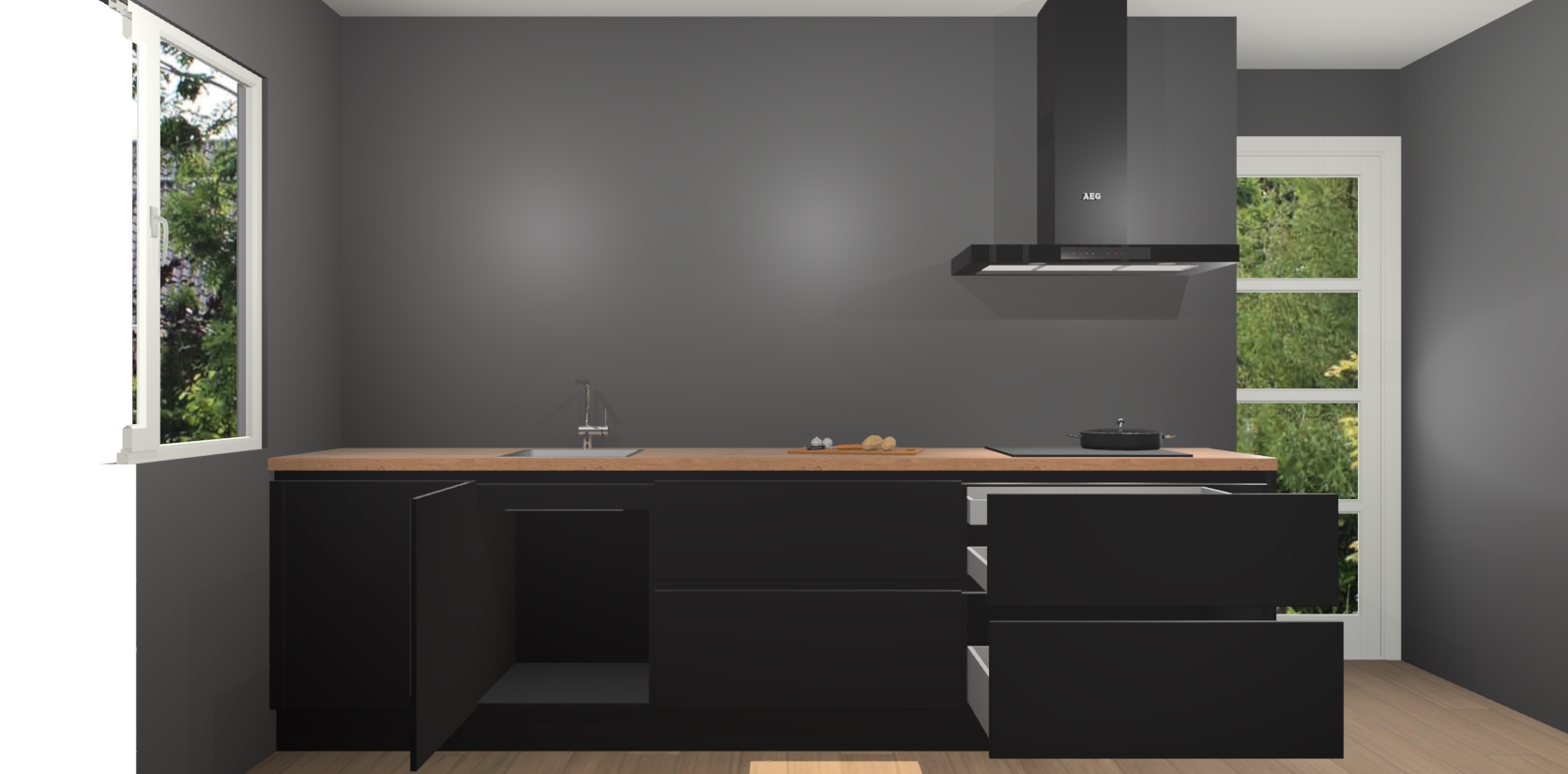 De softclose deuren openen en sluiten is ook heel eenvoudig - geniet van een moeiteloze keukenervaring, zelfs als er kinderen rondlopen. Voor extra gemak bij het plaatsen van uw bestelling bieden we ook een upgrade naar een kookplaat met geïntegreerde afzuiging.