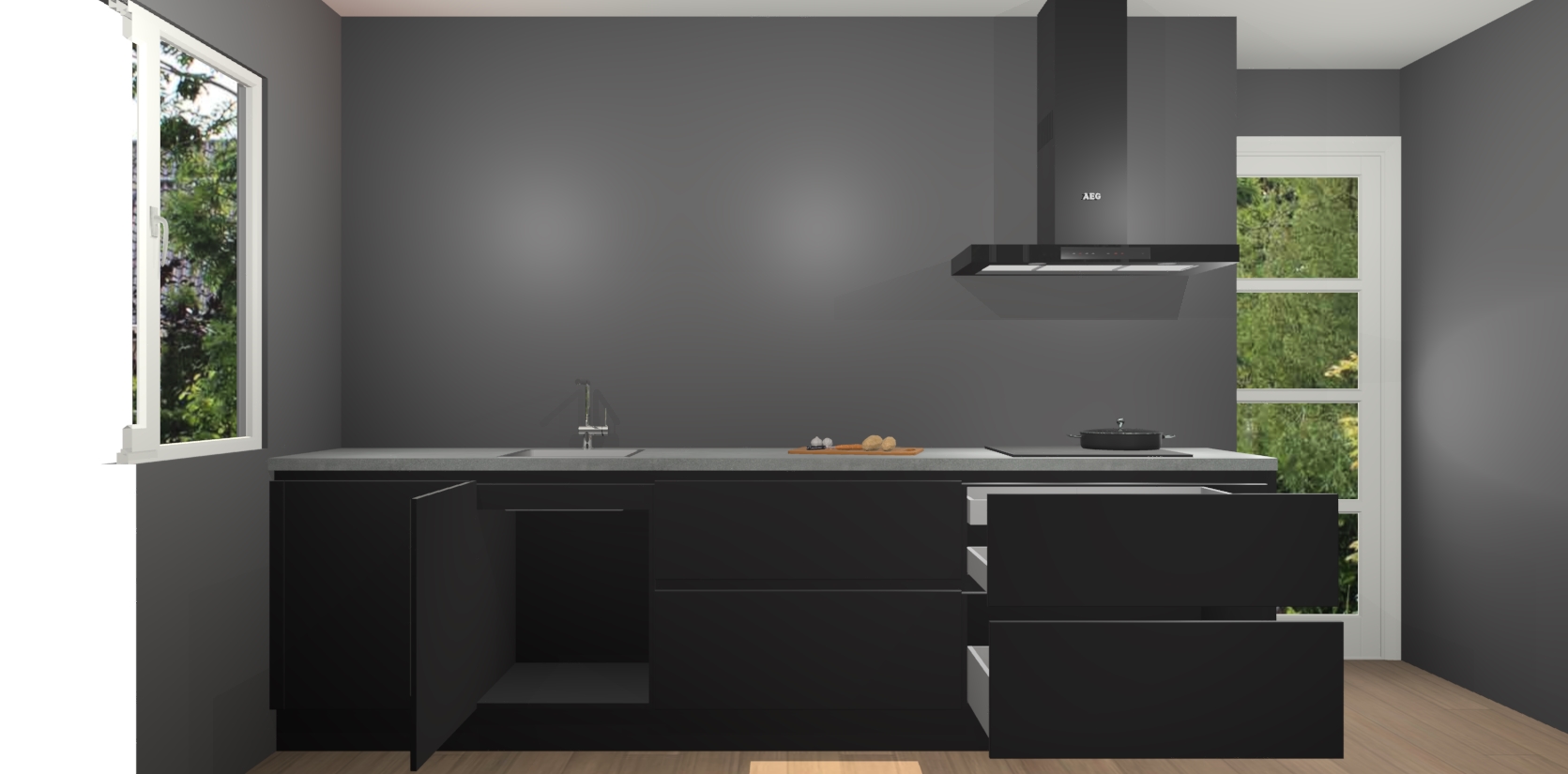 De softclose deuren openen en sluiten is ook heel eenvoudig - geniet van een moeiteloze keukenervaring, zelfs als er kinderen rondlopen. Voor extra gemak bij het plaatsen van uw bestelling bieden we ook een upgrade naar een kookplaat met geïntegreerde afzuiging.
