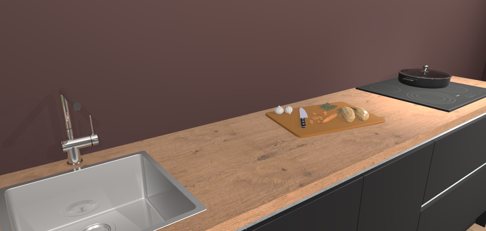 - Uitsparing van kookplaat, spoelbak en kraan dient u zelf te verzorgen.