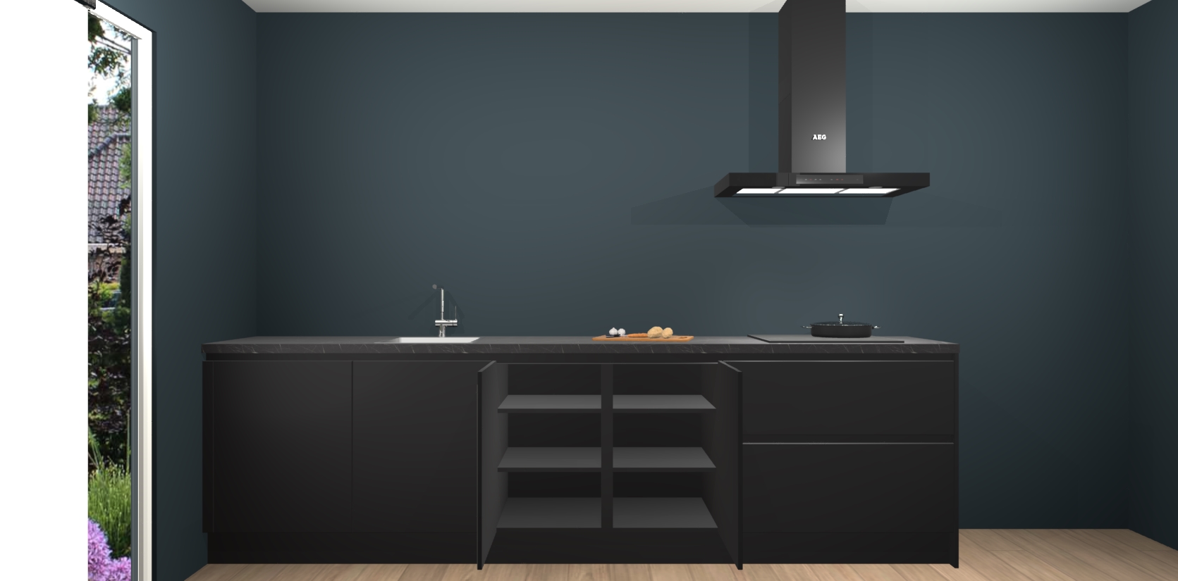 De softclose deuren openen en sluiten is ook heel eenvoudig - geniet van een moeiteloze keukenervaring, zelfs als er kinderen rondlopen. Voor extra gemak bij het plaatsen van uw bestelling bieden we ook een upgrade naar een kookplaat met geïntegreerde afzuiging.