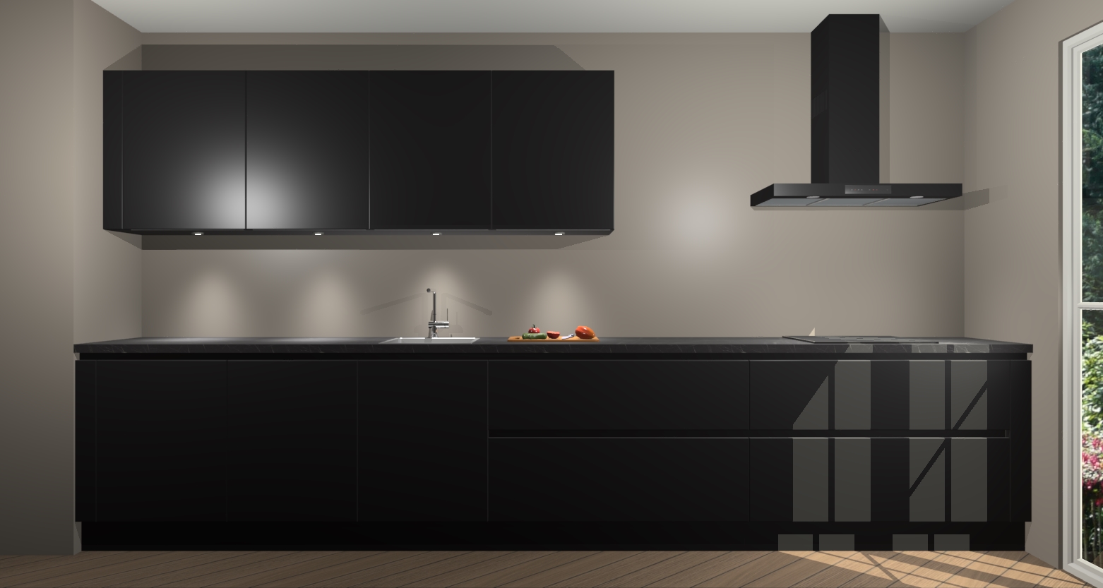 Dankzij de greeploze afwerking past de Zwarte greeploze keuken Hilo naadloos in elk huis of appartement. De soft-close deuren geven je extra gemoedsrust, want ze sluiten vanzelf en slaan nooit dicht! En alsof dat nog niet genoeg is, worden deze kasten volledig gemonteerd geleverd, dus maak je geen zorgen over eventuele installatieproblemen.