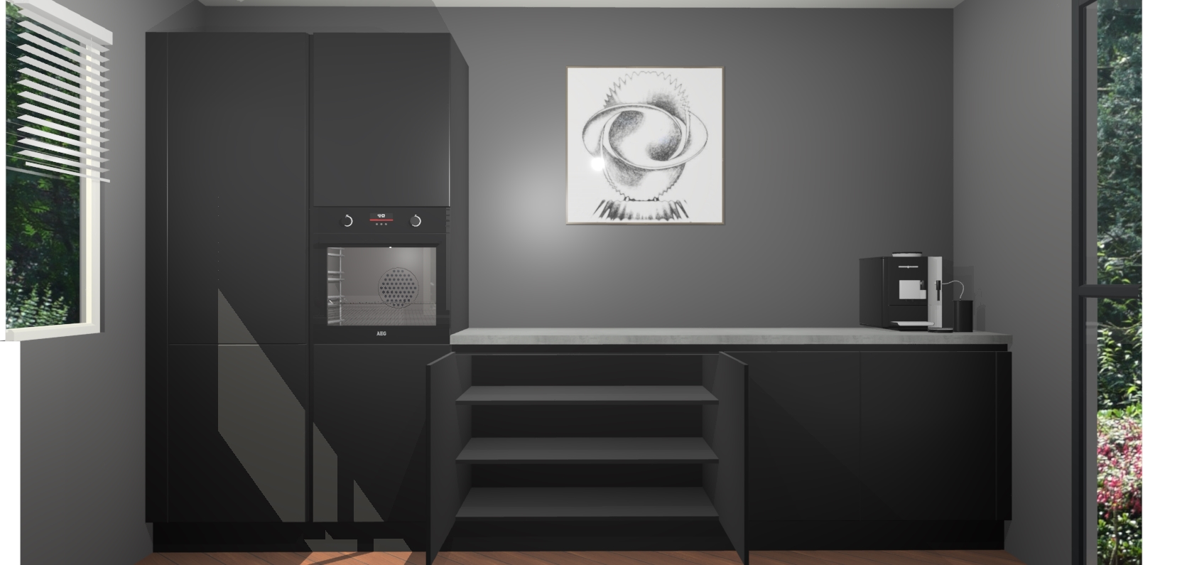 Welkom bij de Zwarte greeploze keuken Lusaka. Deze prachtige keuken zal de komende jaren het middelpunt van de belangstelling in uw huis zijn. Uitgerust met vijf inbouwapparaten komt u nooit kookgereedschap tekort. Bovendien geeft de warme houtlook elke ruimte een uitnodigende en tijdloze uitstraling.