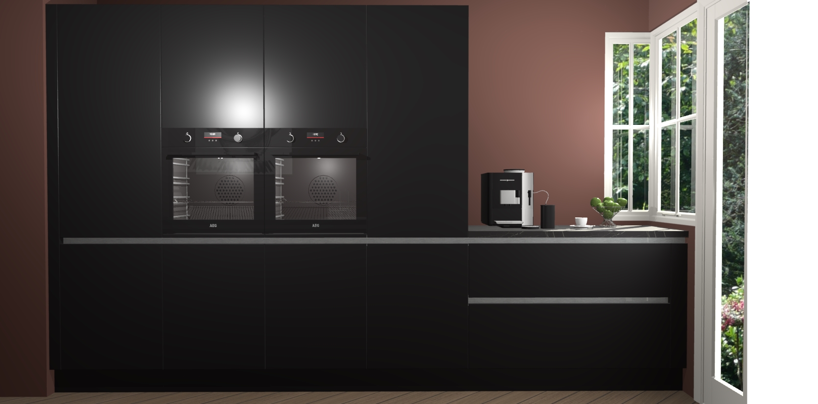 Een stijlvolle en praktische keuken als deze mag gezien worden. Dankzij de prachtige zwarte matte afwerking wordt de keuken gemakkelijk het middelpunt van uw huis - hij ziet er geweldig uit onder allerlei lichtomstandigheden, van dag tot nacht!