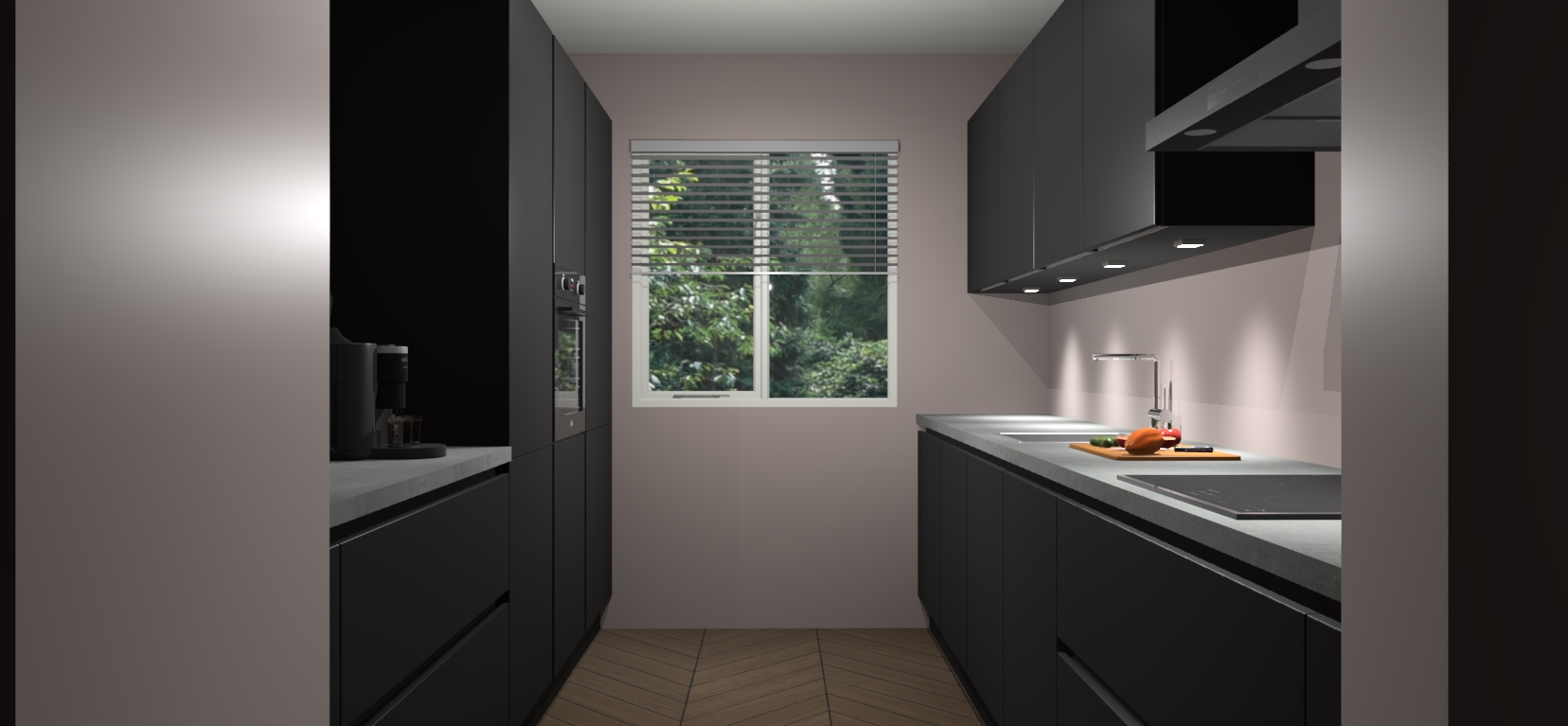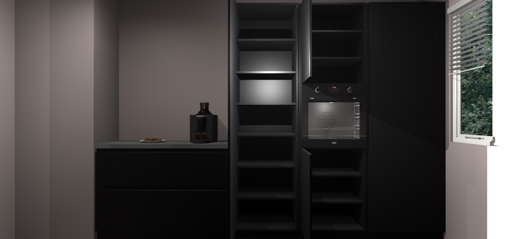 Een stijlvolle en praktische keuken als deze mag gezien worden. Dankzij de prachtige Zwarte matte afwerking wordt de keuken gemakkelijk het middelpunt van uw huis - hij ziet er geweldig uit onder allerlei lichtomstandigheden, van dag tot nacht!