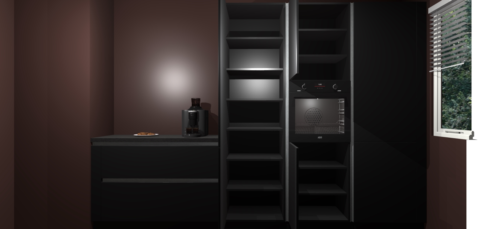 Een stijlvolle en praktische keuken als deze mag gezien worden. Dankzij de prachtige Zwarte matte afwerking wordt de keuken gemakkelijk het middelpunt van uw huis - hij ziet er geweldig uit onder allerlei lichtomstandigheden, van dag tot nacht!