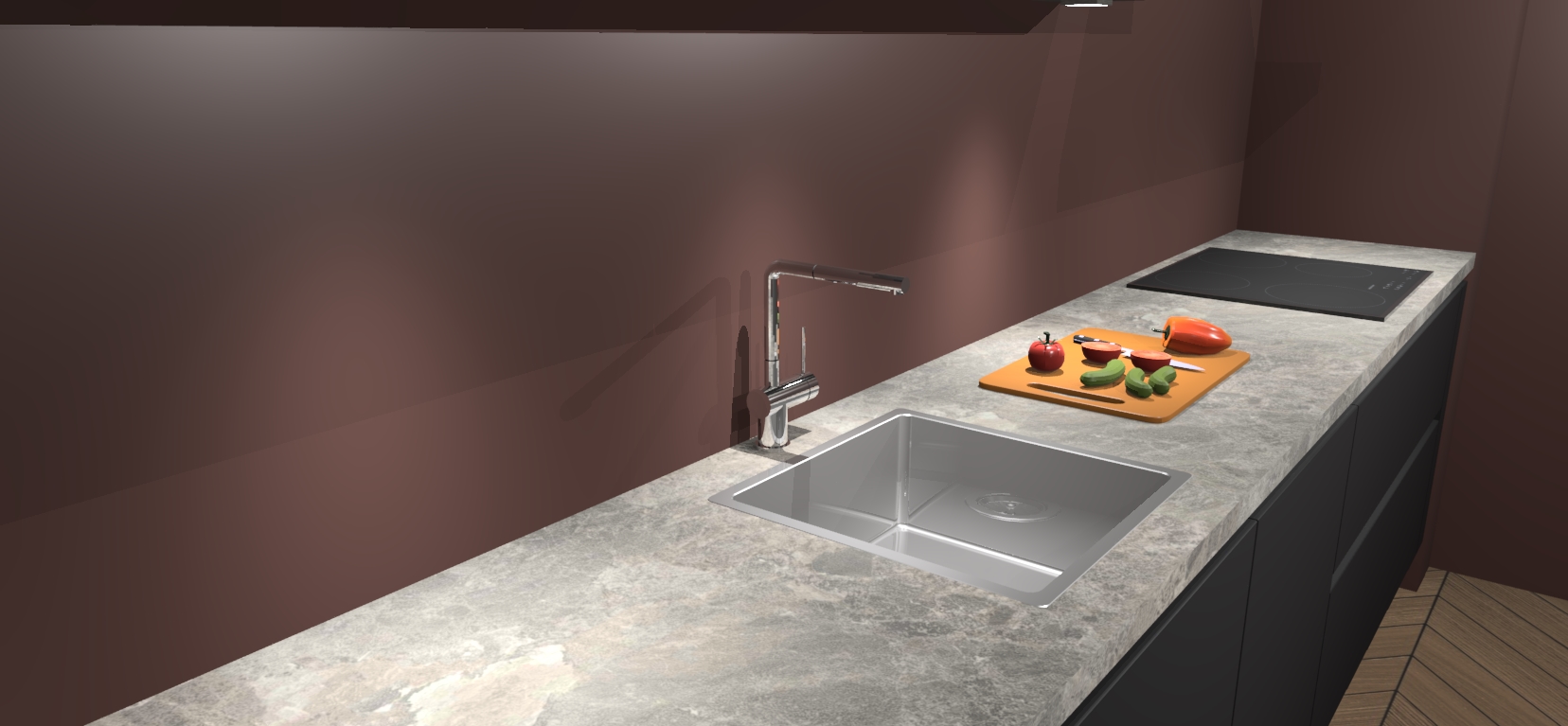 - Uitsparing van kookplaat, spoelbak en kraan dient u zelf te verzorgen.
