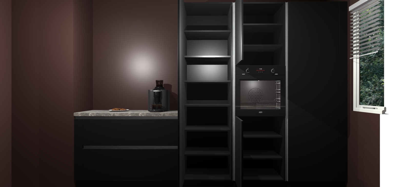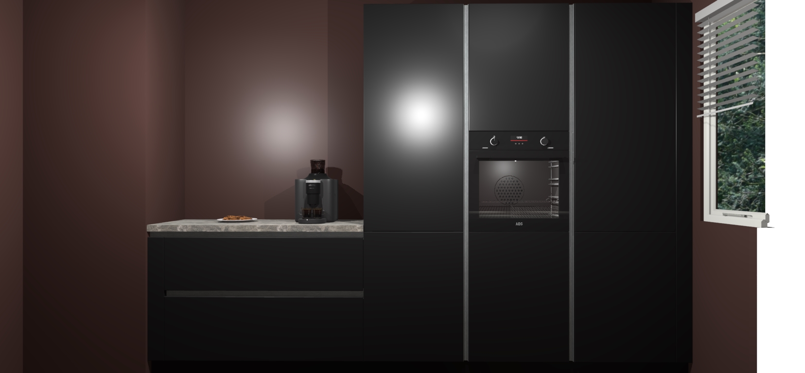 Een stijlvolle en praktische keuken als deze mag gezien worden. Dankzij de prachtige Zwarte matte afwerking wordt de keuken gemakkelijk het middelpunt van uw huis - hij ziet er geweldig uit onder allerlei lichtomstandigheden, van dag tot nacht!