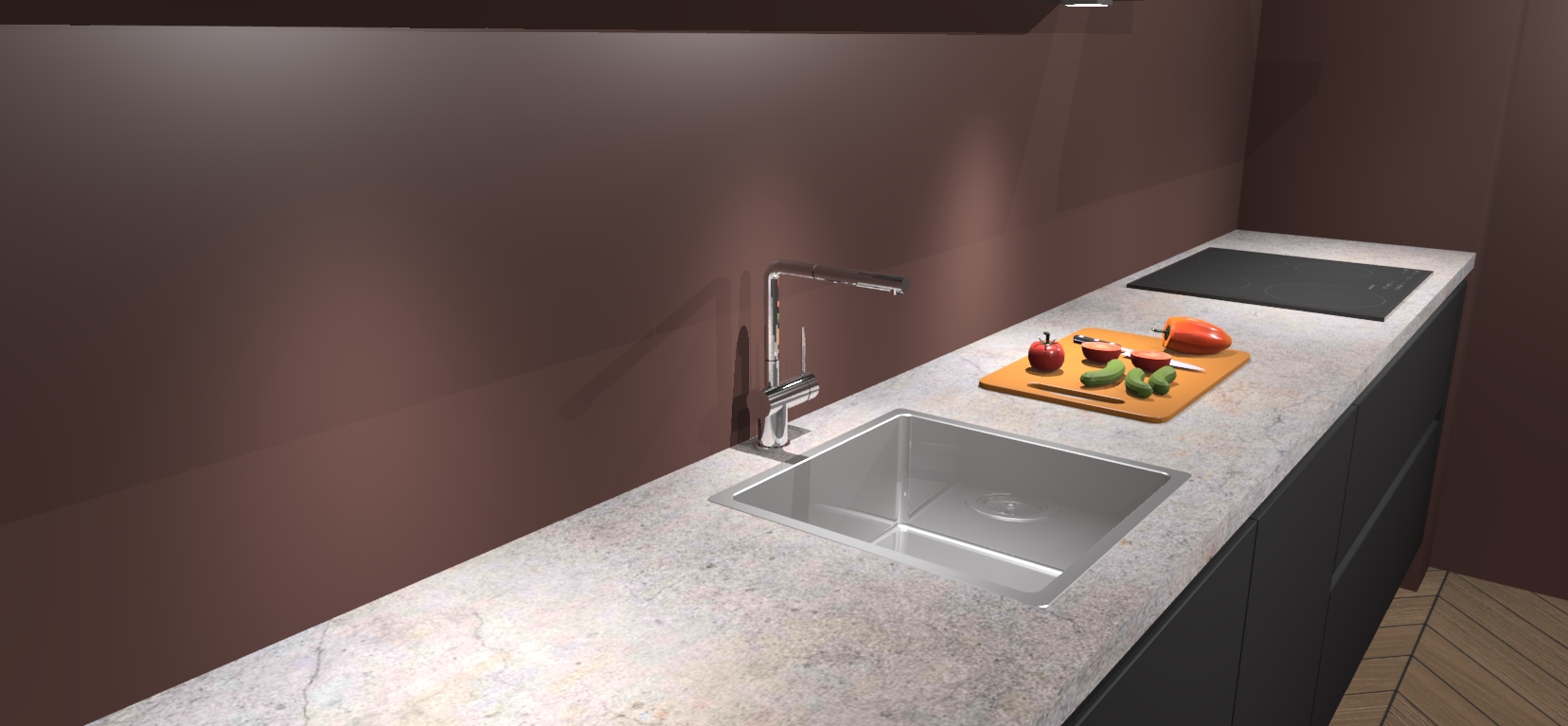 - Uitsparing van kookplaat, spoelbak en kraan dient u zelf te verzorgen.