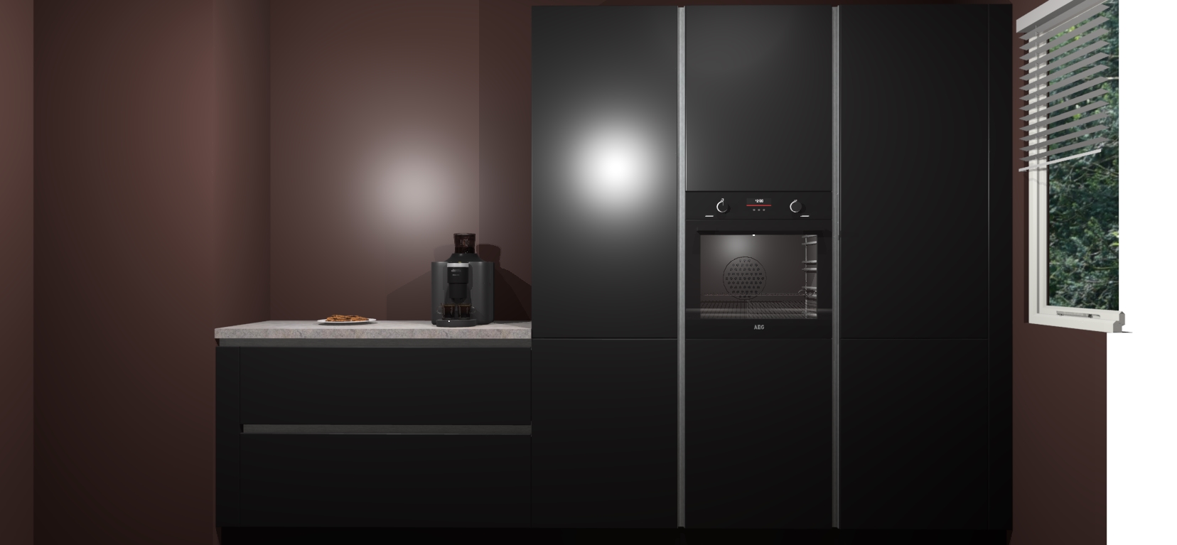 Een stijlvolle en praktische keuken als deze mag gezien worden. Dankzij de prachtige Zwarte matte afwerking wordt de keuken gemakkelijk het middelpunt van uw huis - hij ziet er geweldig uit onder allerlei lichtomstandigheden, van dag tot nacht!