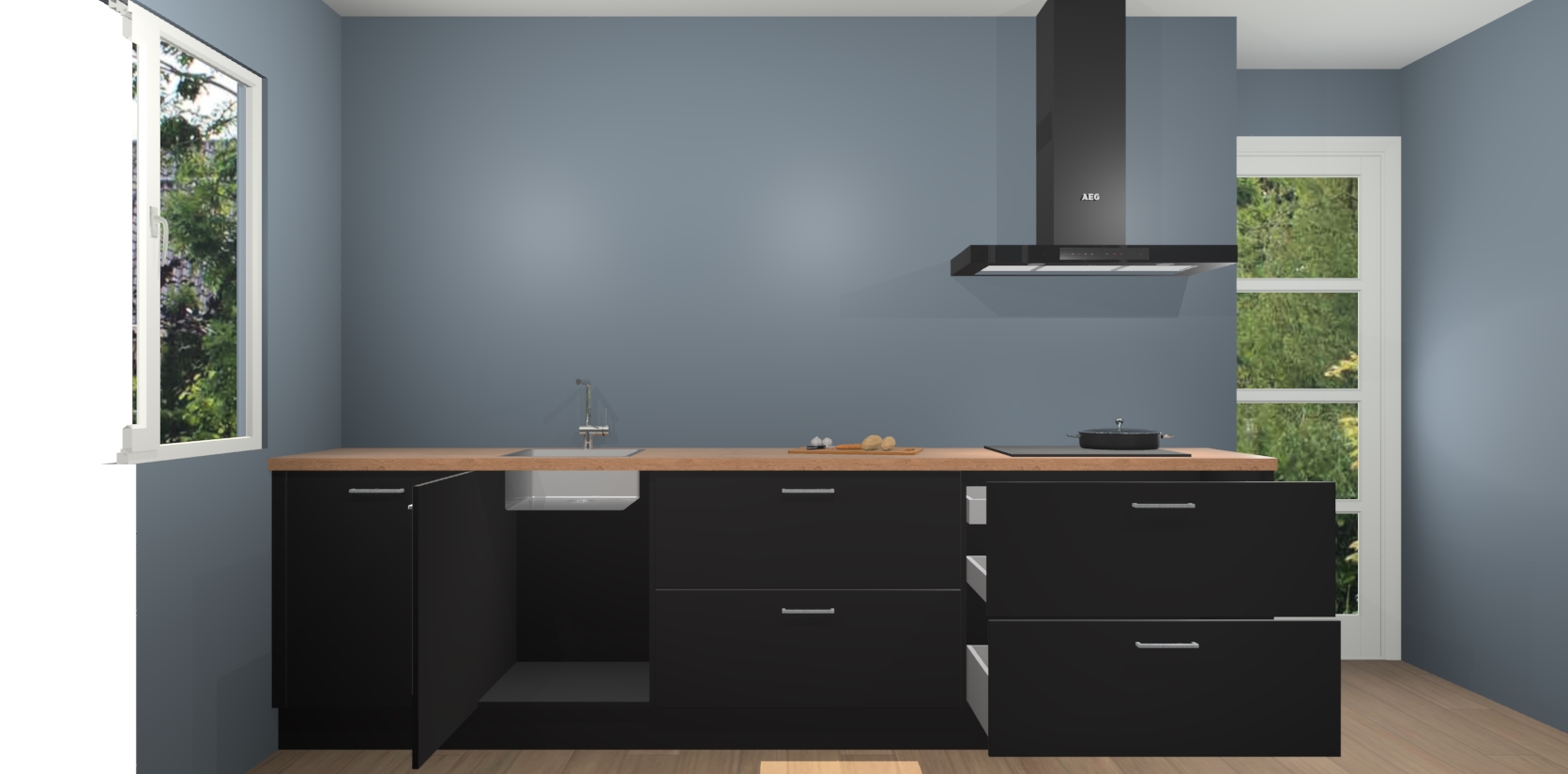 De softclose deuren openen en sluiten is ook heel eenvoudig - geniet van een moeiteloze keukenervaring, zelfs als er kinderen rondlopen. Voor extra gemak bij het plaatsen van uw bestelling bieden we ook een upgrade naar een kookplaat met geïntegreerde afzuiging.
