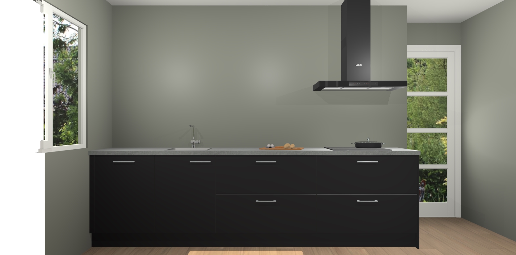 De softclose deuren openen en sluiten is ook heel eenvoudig - geniet van een moeiteloze keukenervaring, zelfs als er kinderen rondlopen. Voor extra gemak bij het plaatsen van uw bestelling bieden we ook een upgrade naar een kookplaat met geïntegreerde afzuiging.
