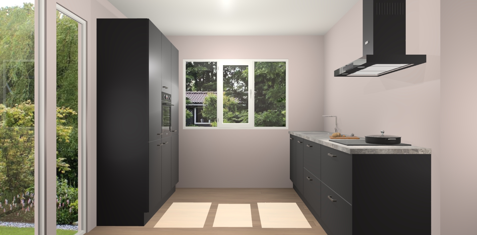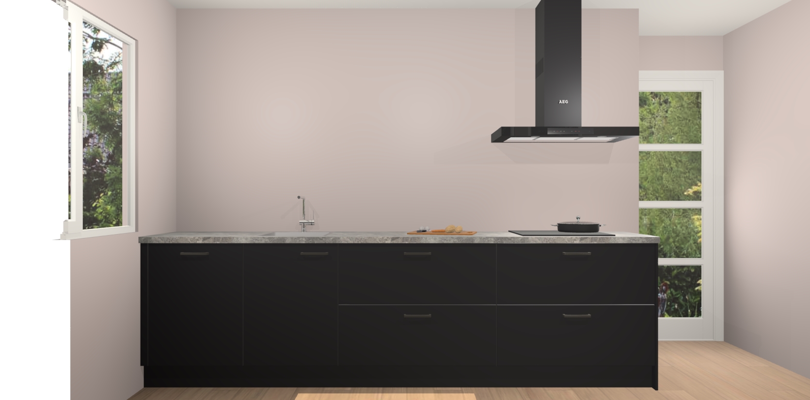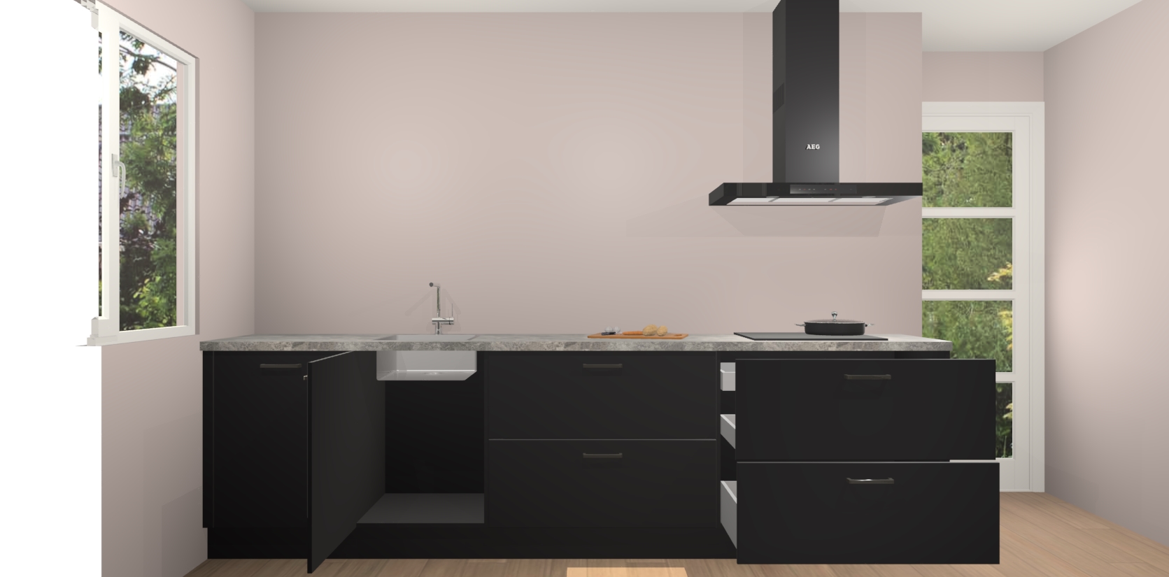 De softclose deuren openen en sluiten is ook heel eenvoudig - geniet van een moeiteloze keukenervaring, zelfs als er kinderen rondlopen. Voor extra gemak bij het plaatsen van uw bestelling bieden we ook een upgrade naar een kookplaat met geïntegreerde afzuiging.