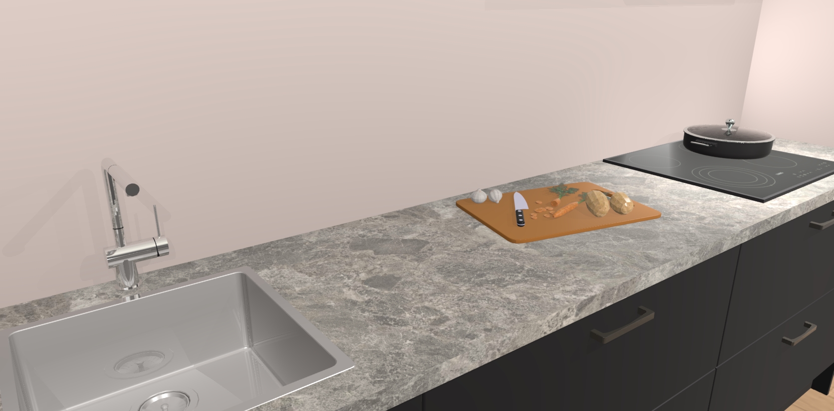 Inclusief plinten, stelpoten en werkblad