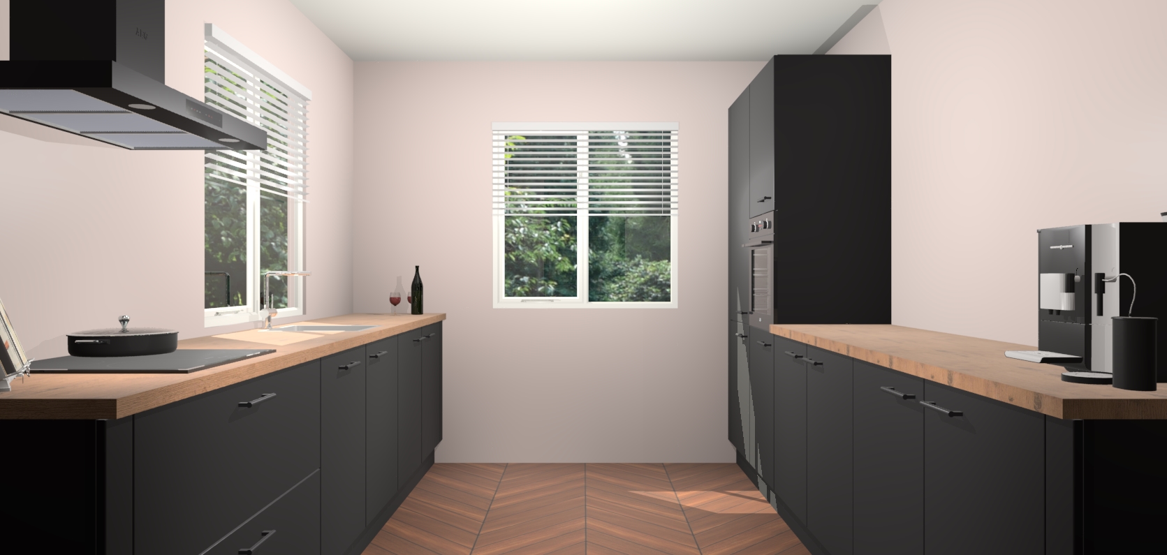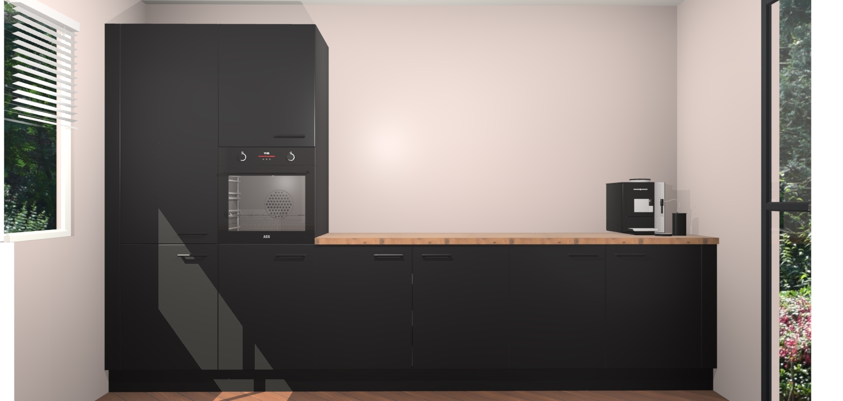 Welkom bij de Zwarte keuken Lusaka. Deze prachtige keuken zal de komende jaren het middelpunt van de belangstelling in uw huis zijn. Uitgerust met vijf inbouwapparaten komt u nooit kookgereedschap tekort. Bovendien geeft de warme houtlook elke ruimte een uitnodigende en tijdloze uitstraling.