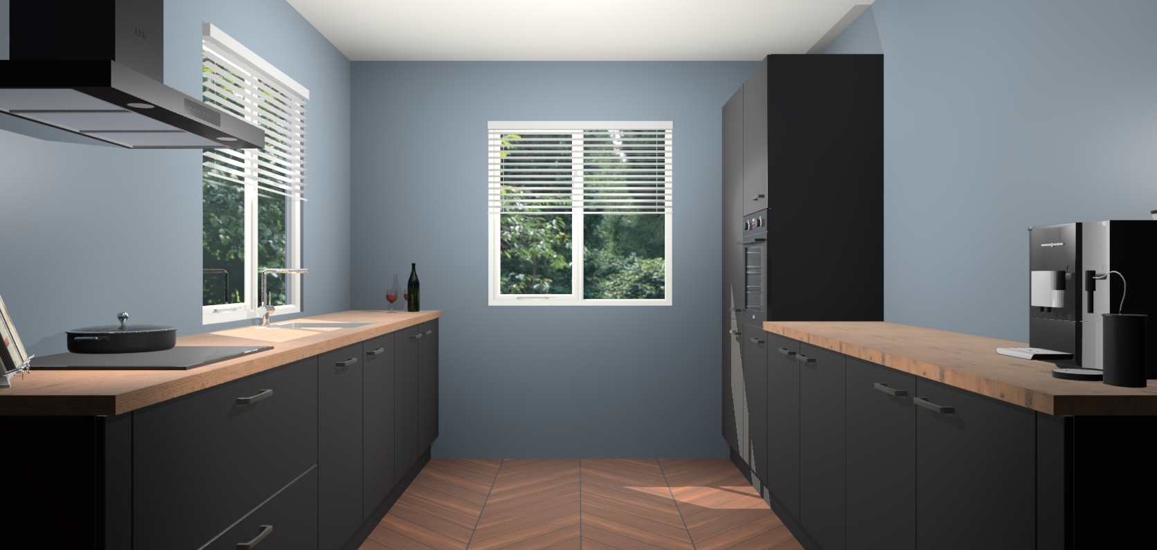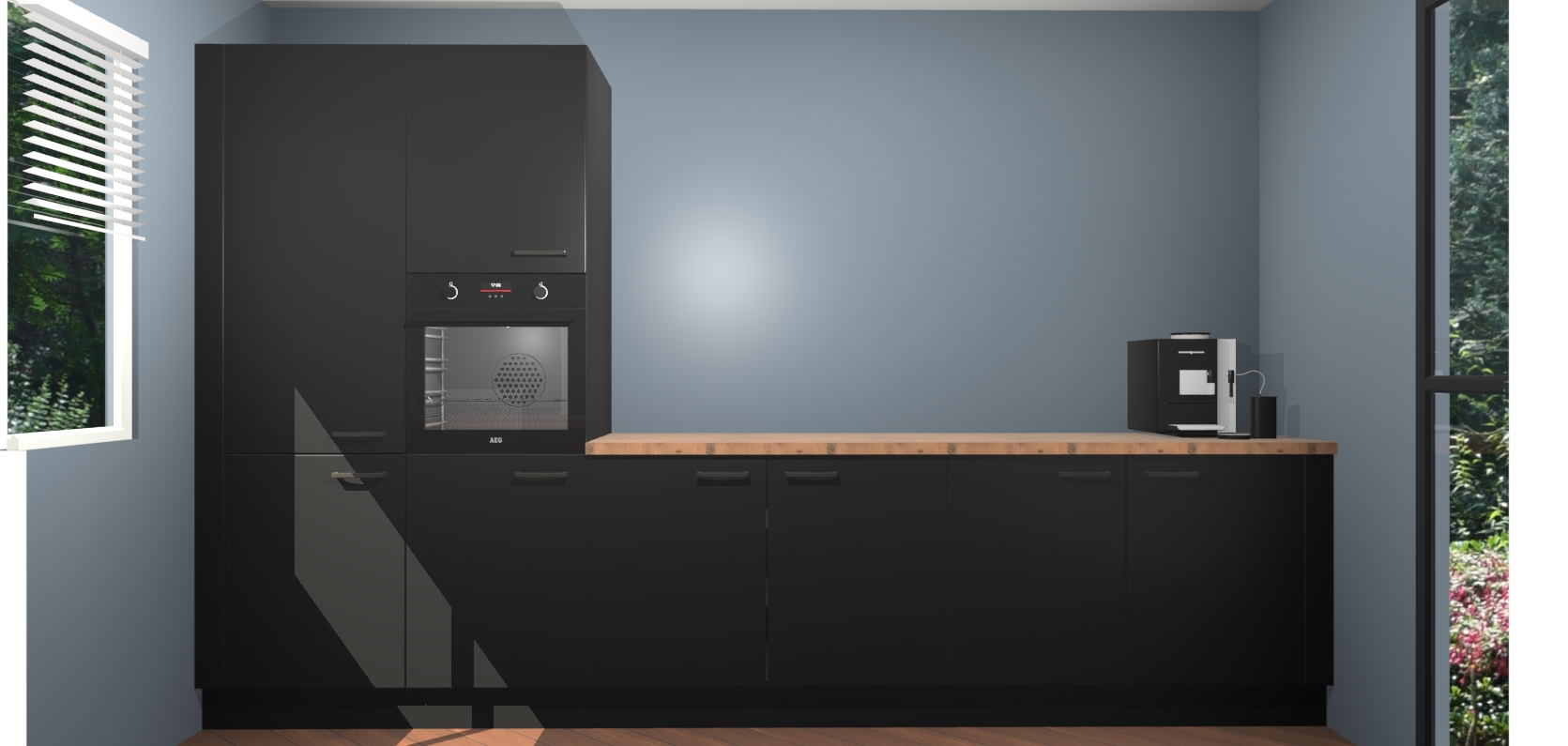Welkom bij de Zwarte keuken Lusaka. Deze prachtige keuken zal de komende jaren het middelpunt van de belangstelling in uw huis zijn. Uitgerust met vijf inbouwapparaten komt u nooit kookgereedschap tekort. Bovendien geeft de warme houtlook elke ruimte een uitnodigende en tijdloze uitstraling.
