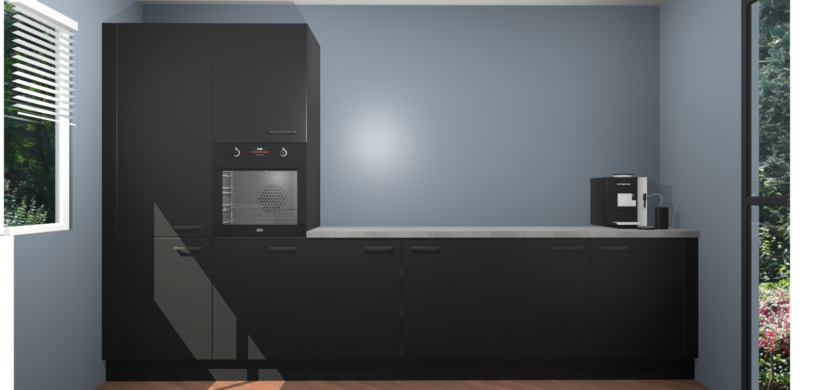 Welkom bij de Zwarte keuken Lusaka. Deze prachtige keuken zal de komende jaren het middelpunt van de belangstelling in uw huis zijn. Uitgerust met vijf inbouwapparaten komt u nooit kookgereedschap tekort. Bovendien geeft de warme houtlook elke ruimte een uitnodigende en tijdloze uitstraling.