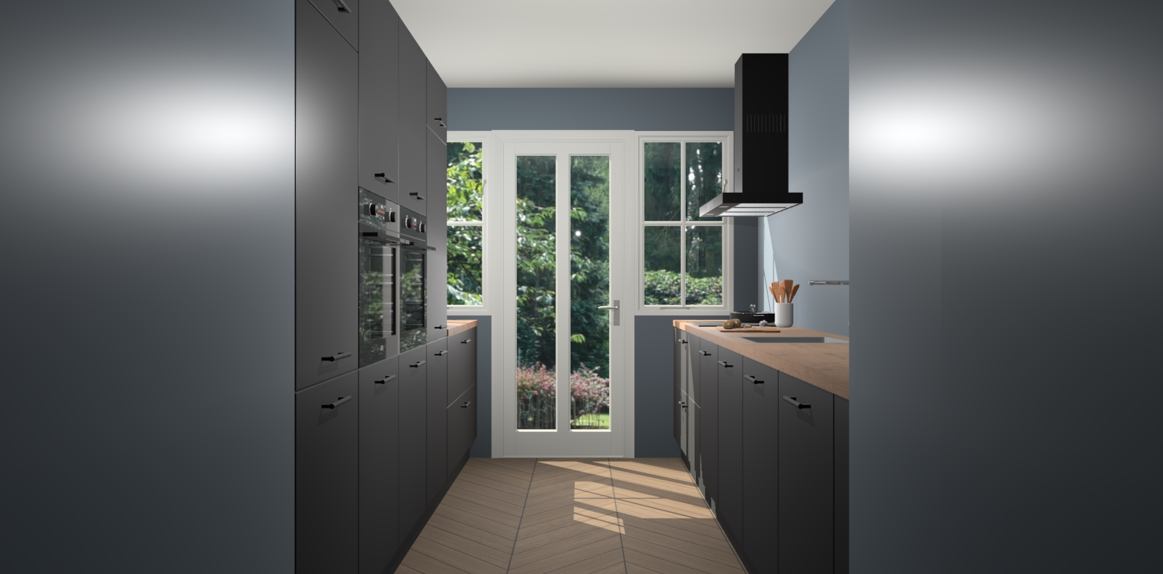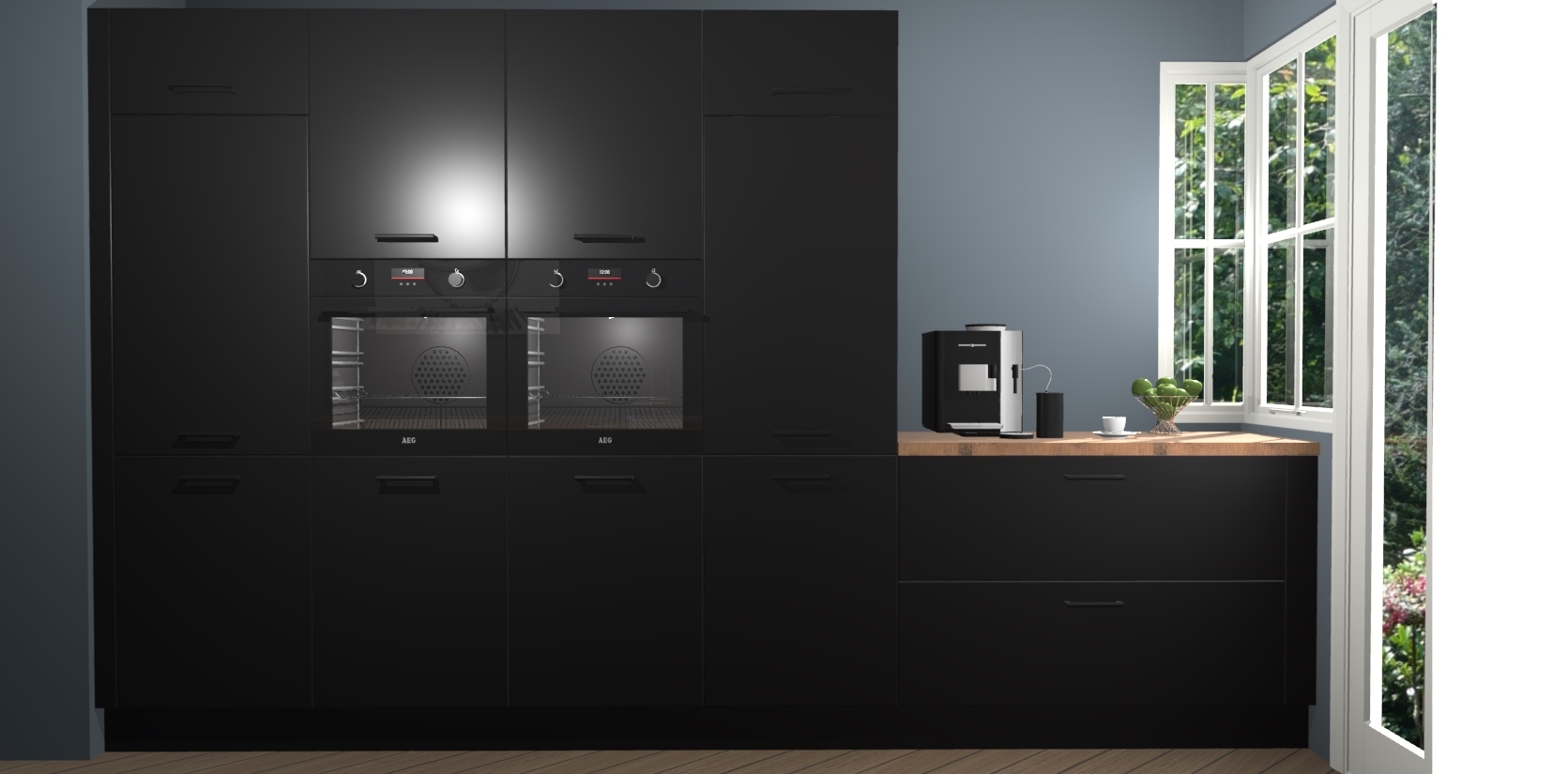 Een stijlvolle en praktische keuken als deze mag gezien worden. Dankzij de prachtige zwarte matte afwerking wordt de keuken gemakkelijk het middelpunt van uw huis - hij ziet er geweldig uit onder allerlei lichtomstandigheden, van dag tot nacht!