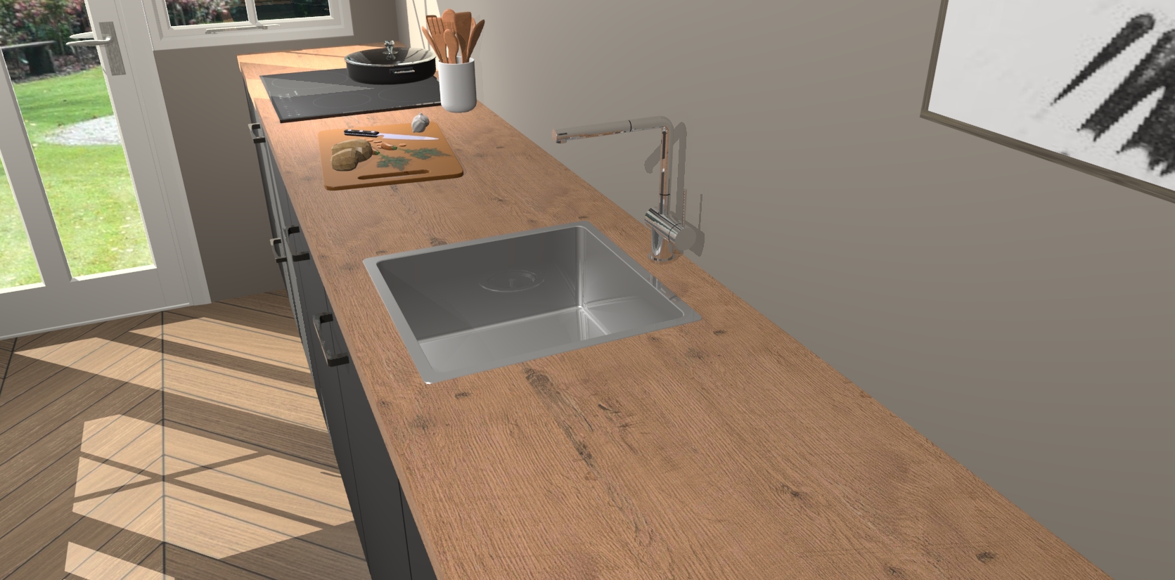 - Bij een hoekwerkblad zijn de hoeken in gevreesd en op maat gemaakt
