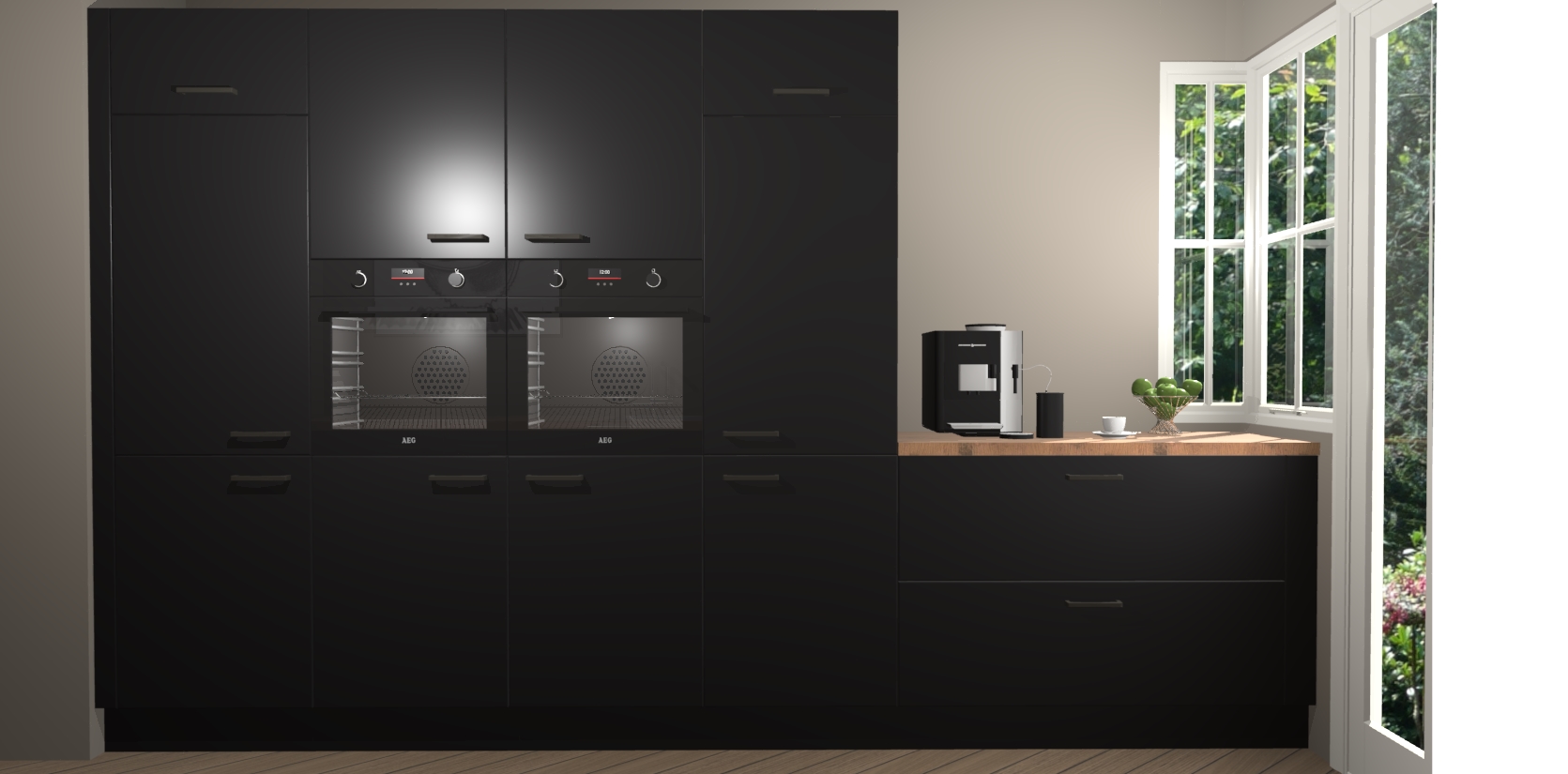 Een stijlvolle en praktische keuken als deze mag gezien worden. Dankzij de prachtige zwarte matte afwerking wordt de keuken gemakkelijk het middelpunt van uw huis - hij ziet er geweldig uit onder allerlei lichtomstandigheden, van dag tot nacht!