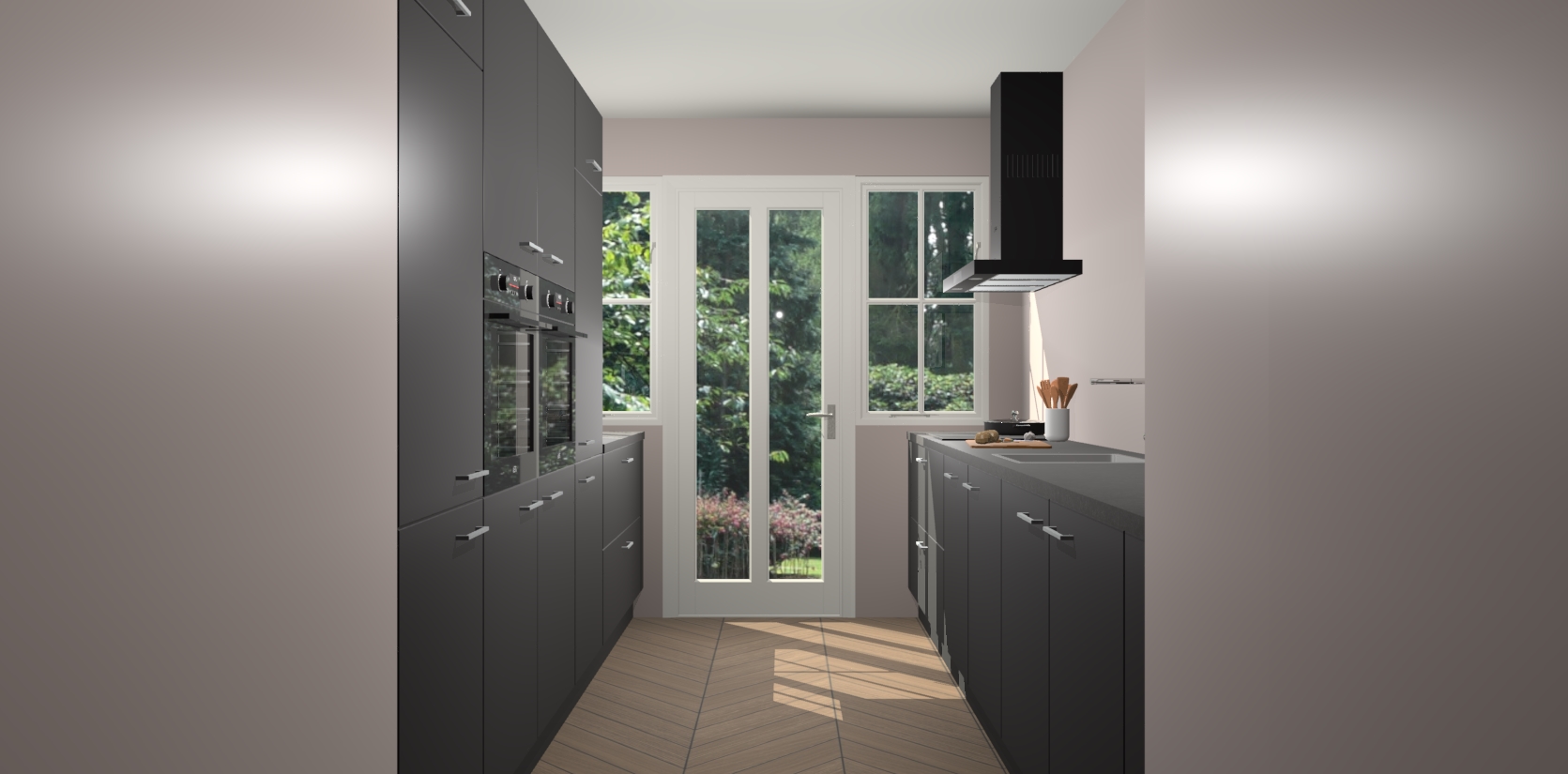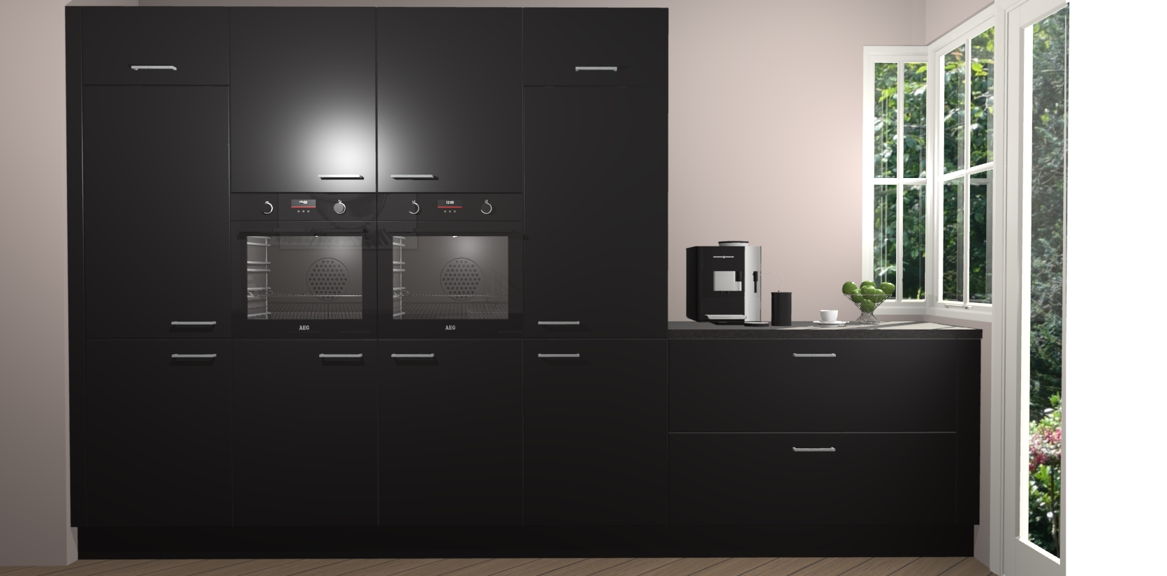 Een stijlvolle en praktische keuken als deze mag gezien worden. Dankzij de prachtige zwarte matte afwerking wordt de keuken gemakkelijk het middelpunt van uw huis - hij ziet er geweldig uit onder allerlei lichtomstandigheden, van dag tot nacht!