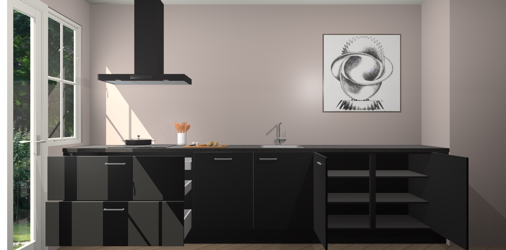 Dankzij de afwerking past de Zwarte keuken Olympia naadloos in elk huis of appartement. De soft-close deuren geven je extra gemoedsrust, want ze sluiten vanzelf en slaan nooit dicht! En alsof dat nog niet genoeg is, worden deze kasten volledig gemonteerd geleverd, dus maak je geen zorgen over eventuele installatieproblemen.