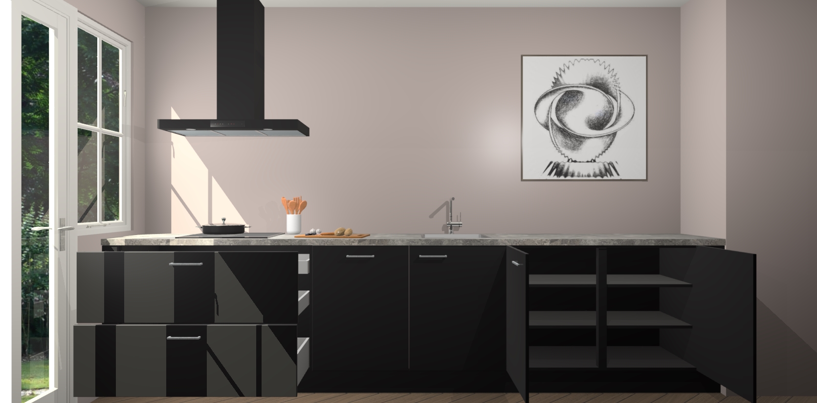 Dankzij de afwerking past de Zwarte keuken Olympia naadloos in elk huis of appartement. De soft-close deuren geven je extra gemoedsrust, want ze sluiten vanzelf en slaan nooit dicht! En alsof dat nog niet genoeg is, worden deze kasten volledig gemonteerd geleverd, dus maak je geen zorgen over eventuele installatieproblemen.