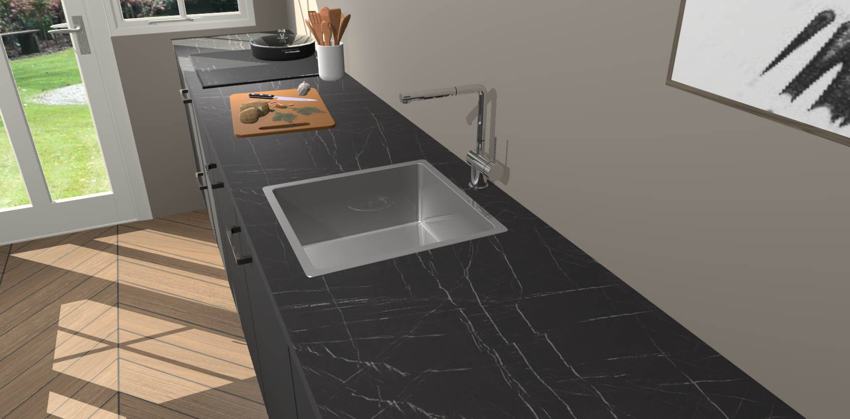 • Bij een hoekwerkblad zijn de hoeken in gevreesd en op maat gemaakt