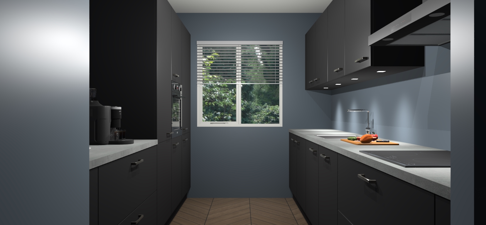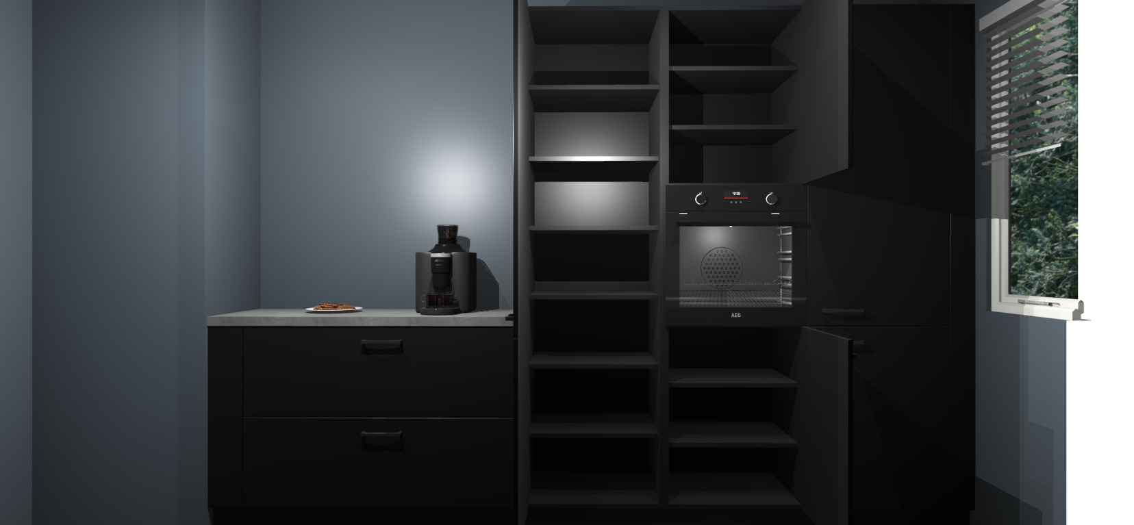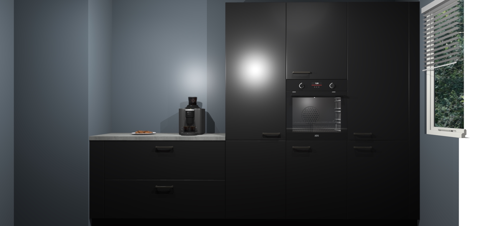 Een stijlvolle en praktische keuken als deze mag gezien worden. Dankzij de prachtige Zwarte matte afwerking wordt de keuken gemakkelijk het middelpunt van uw huis - hij ziet er geweldig uit onder allerlei lichtomstandigheden, van dag tot nacht!
