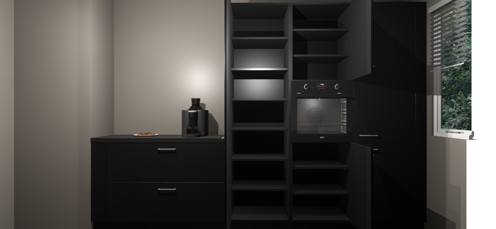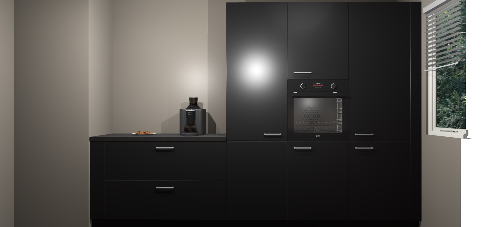 Een stijlvolle en praktische keuken als deze mag gezien worden. Dankzij de prachtige Zwarte matte afwerking wordt de keuken gemakkelijk het middelpunt van uw huis - hij ziet er geweldig uit onder allerlei lichtomstandigheden, van dag tot nacht!