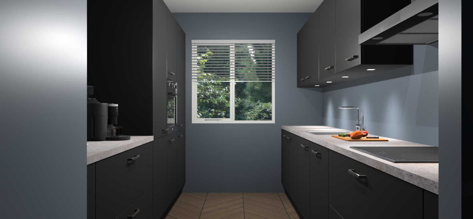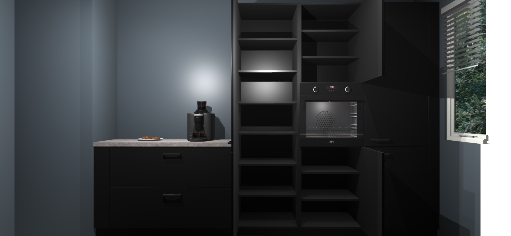 Een stijlvolle en praktische keuken als deze mag gezien worden. Dankzij de prachtige Zwarte matte afwerking wordt de keuken gemakkelijk het middelpunt van uw huis - hij ziet er geweldig uit onder allerlei lichtomstandigheden, van dag tot nacht!